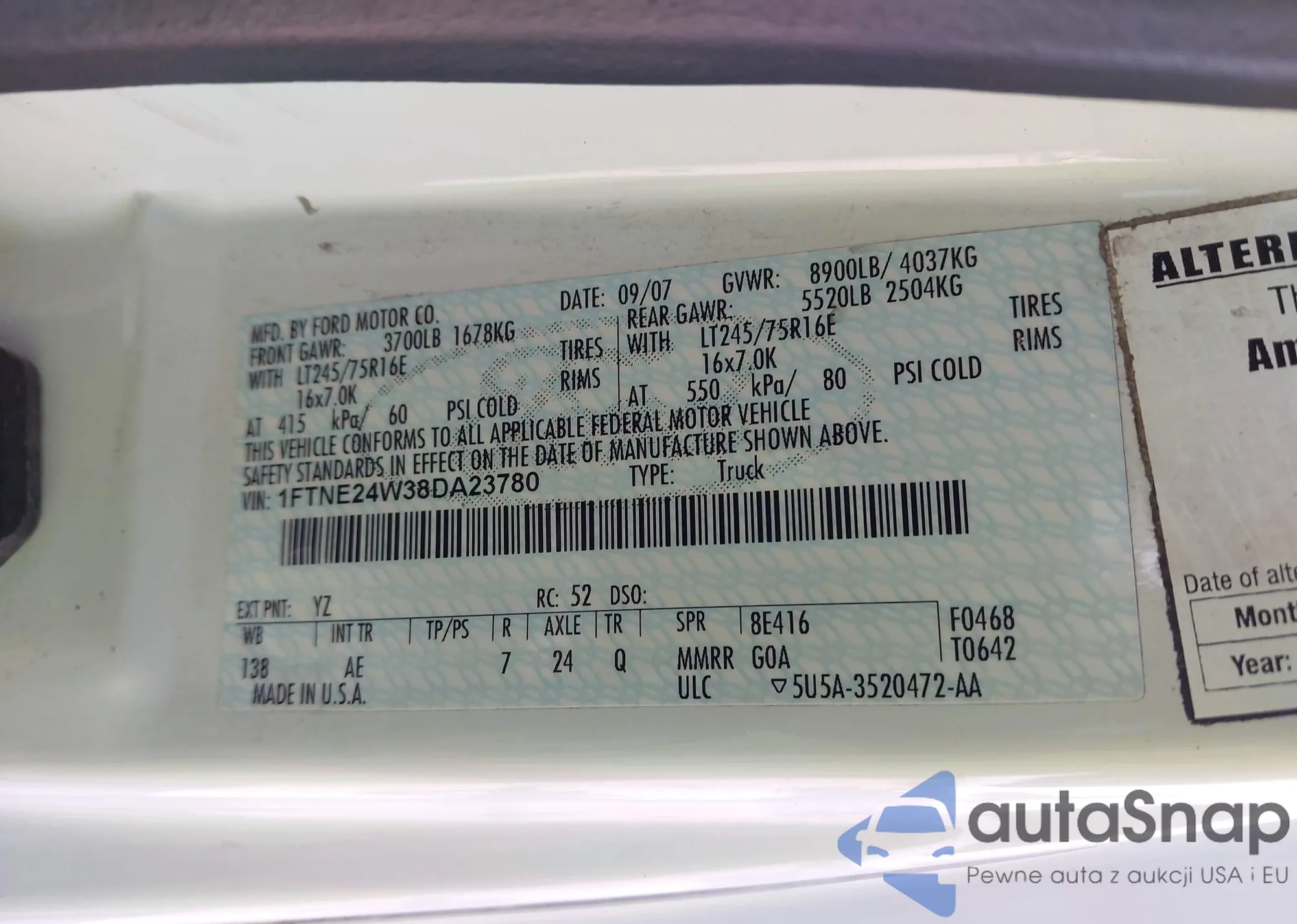 LOT: 43352798 VIN: 1FTNE24W38DA23780