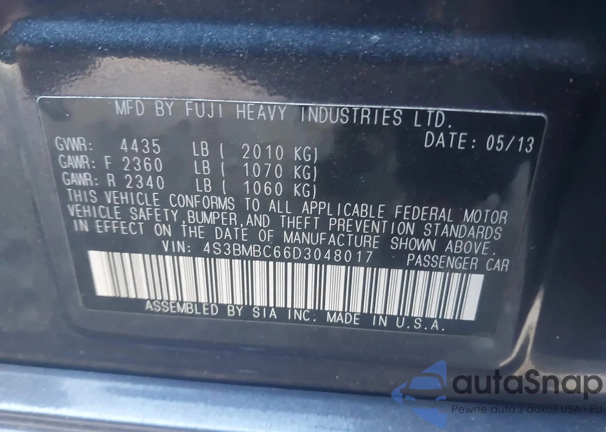 • VIN 1HGCP2F31CA136398
