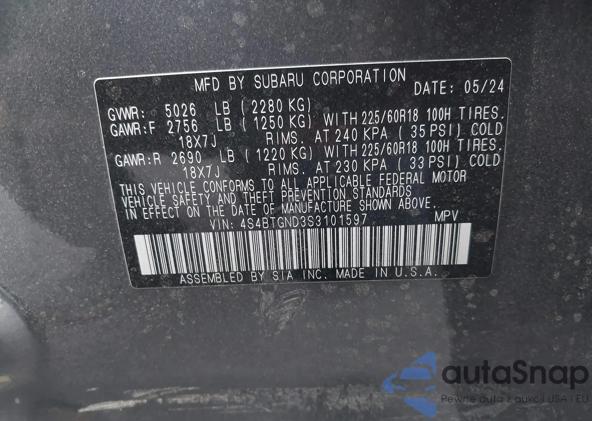 LOT: 43189042 VIN: 4S4BTGND3S3101597