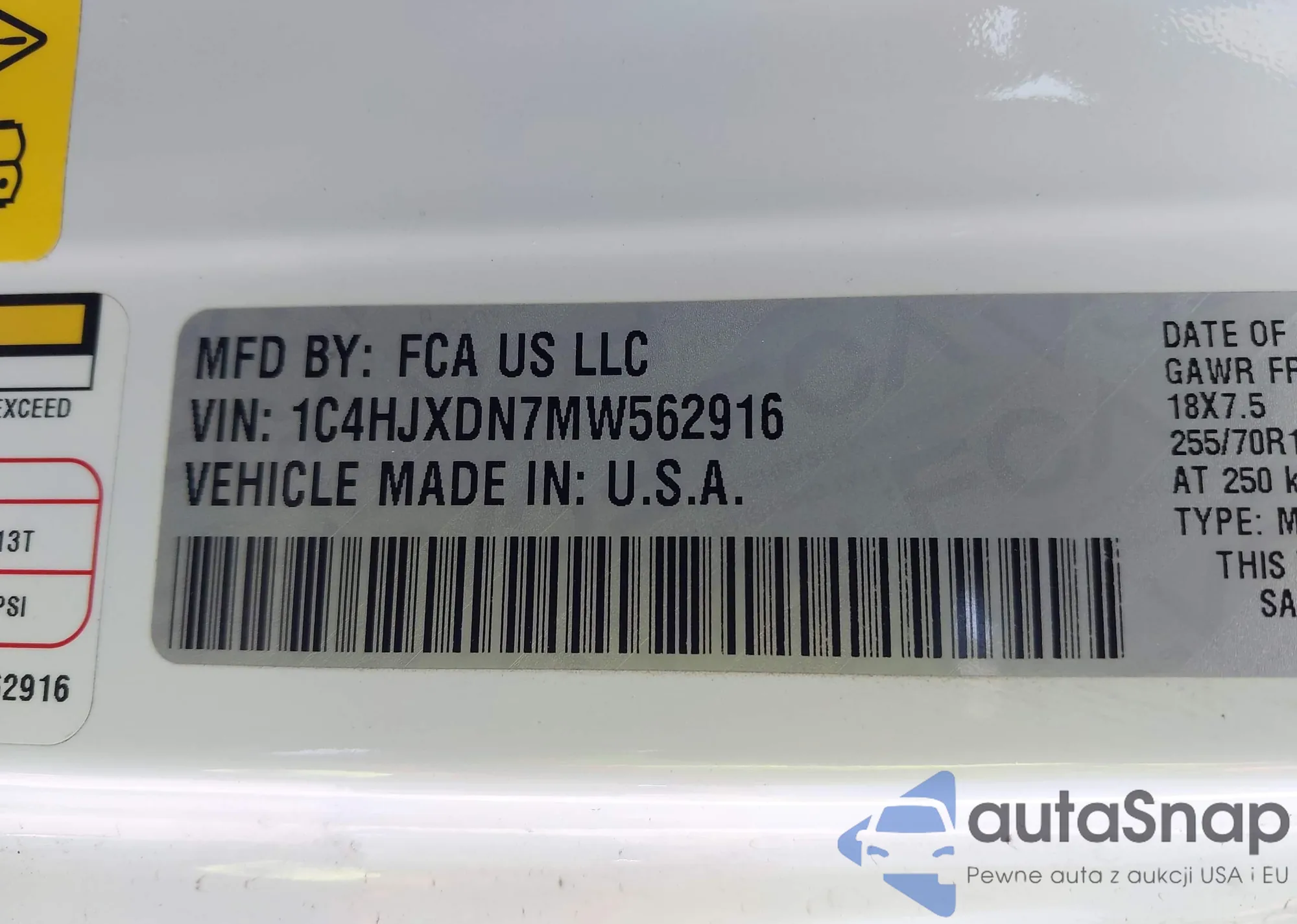 • VIN 1C4HJXDN7MW562916