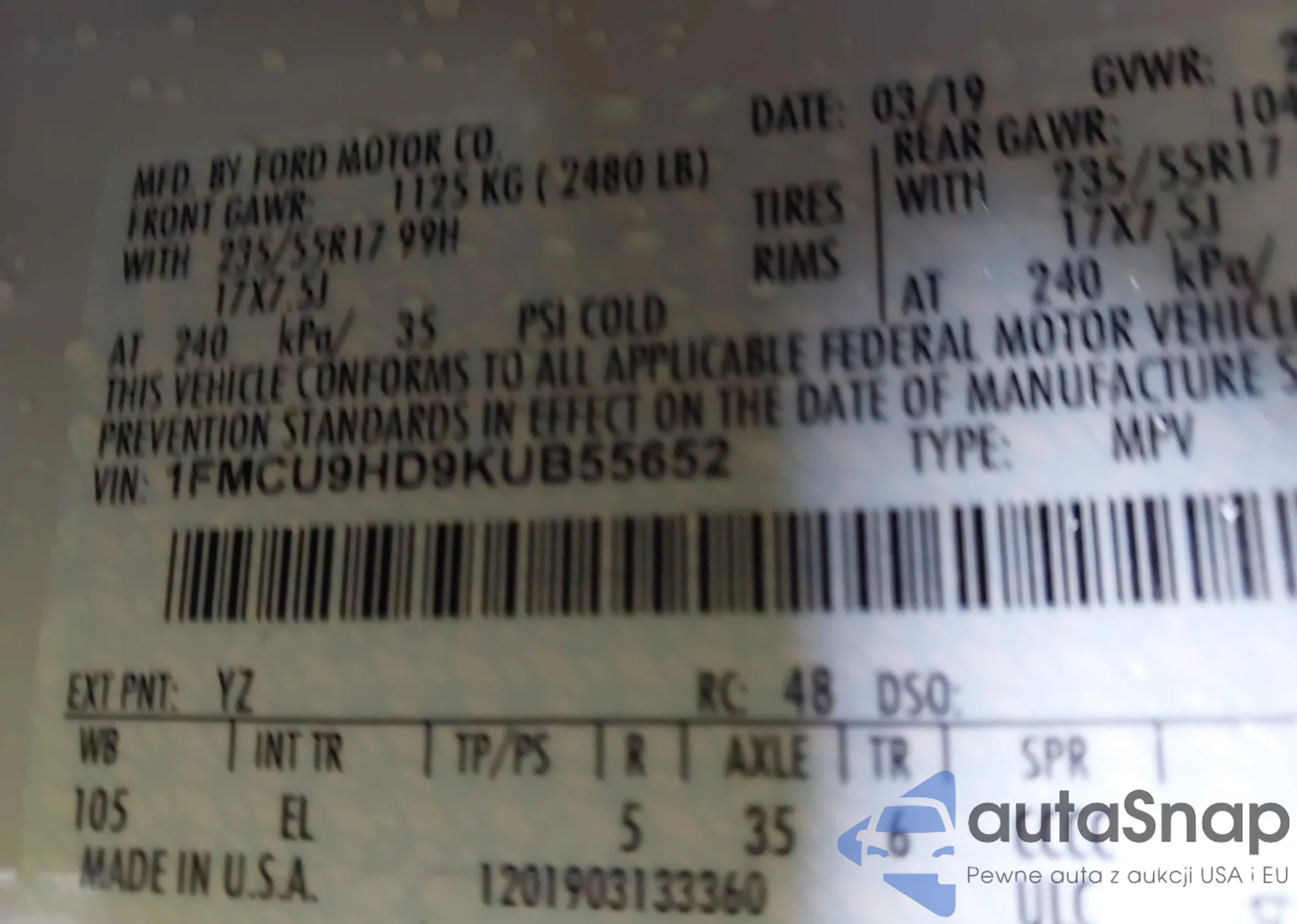 • VIN 3GKALMEV5KL351472
