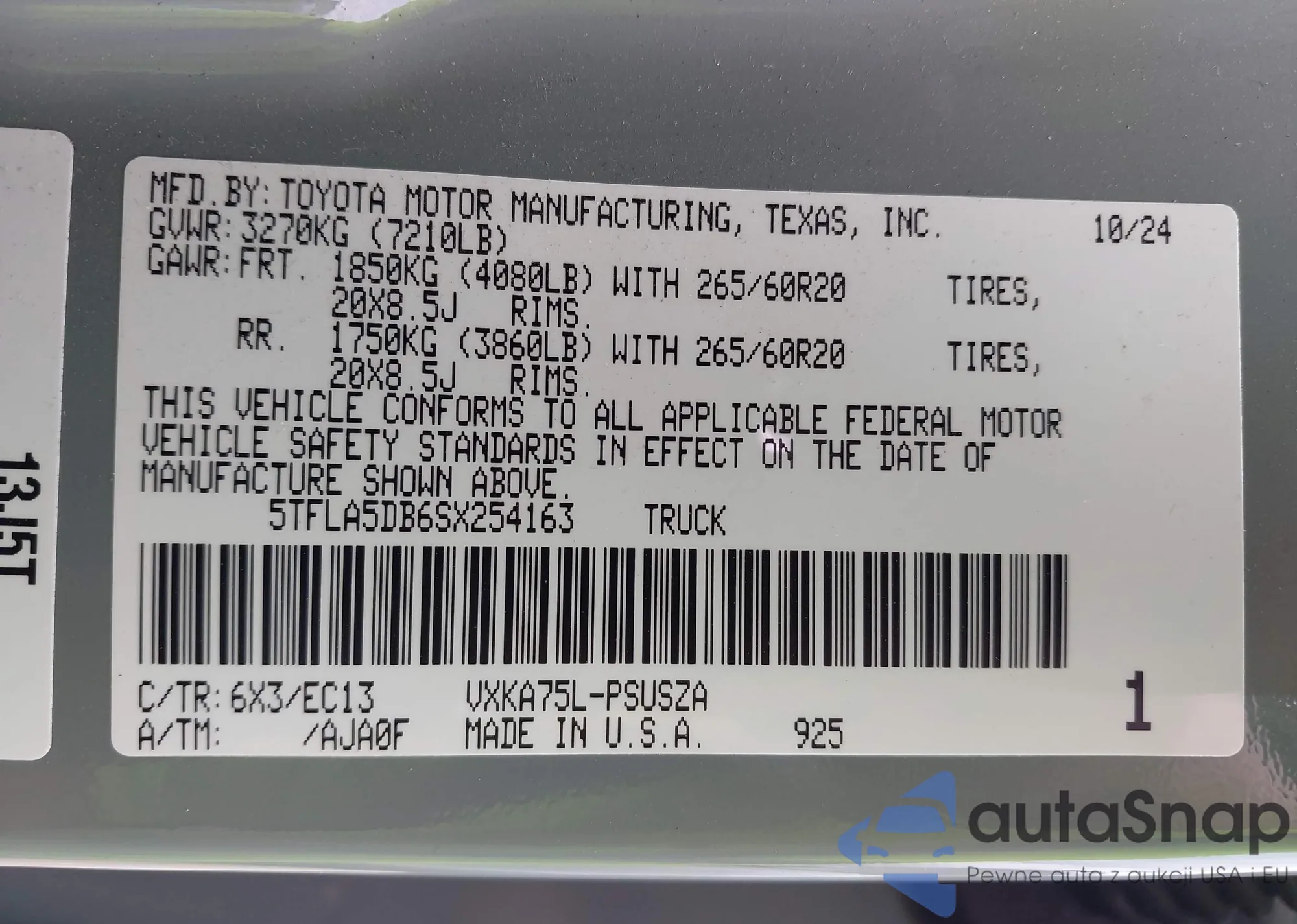 • VIN 5TFLA5DB6SX254163