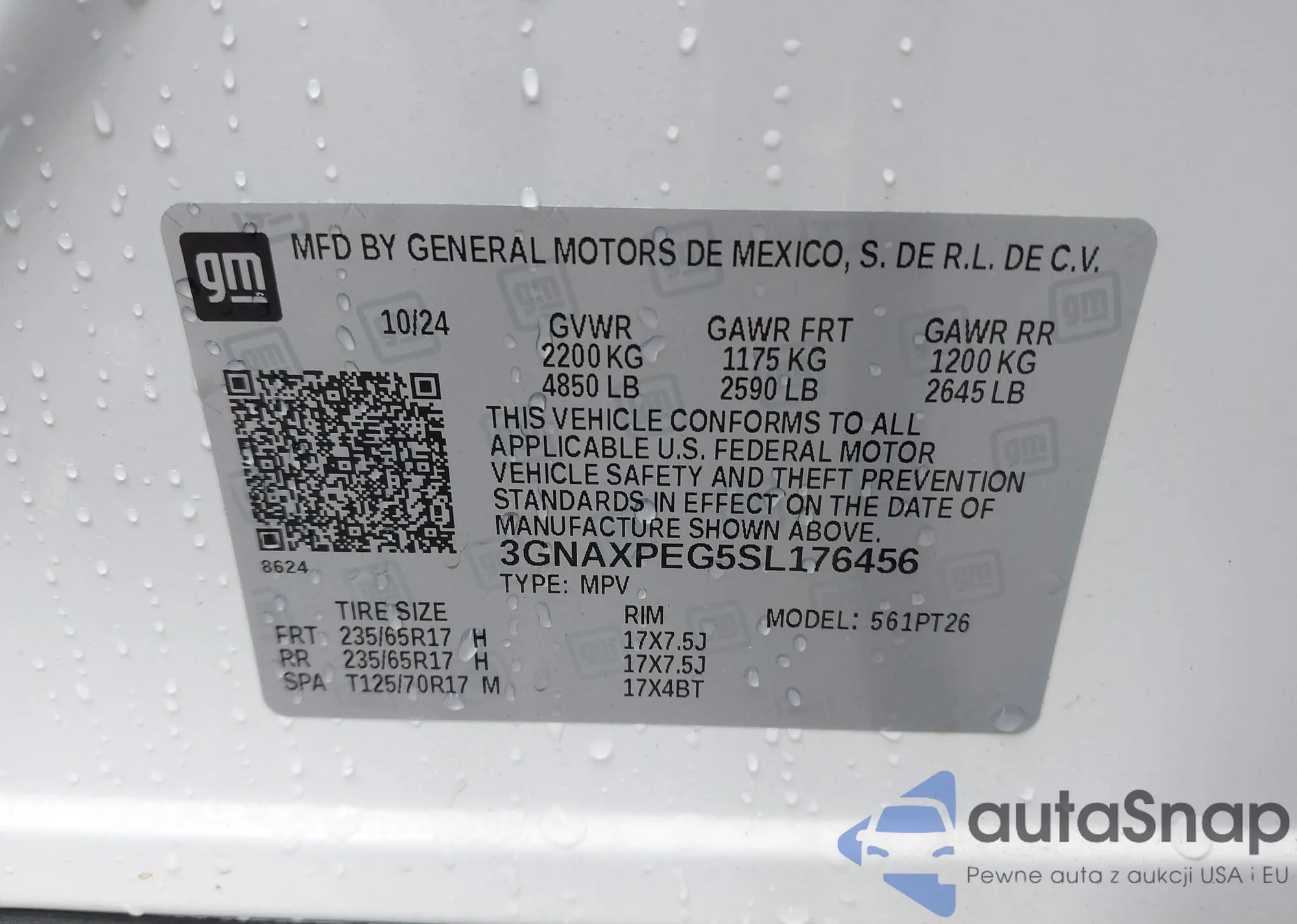 • VIN 3GNAXPEG5SL176456