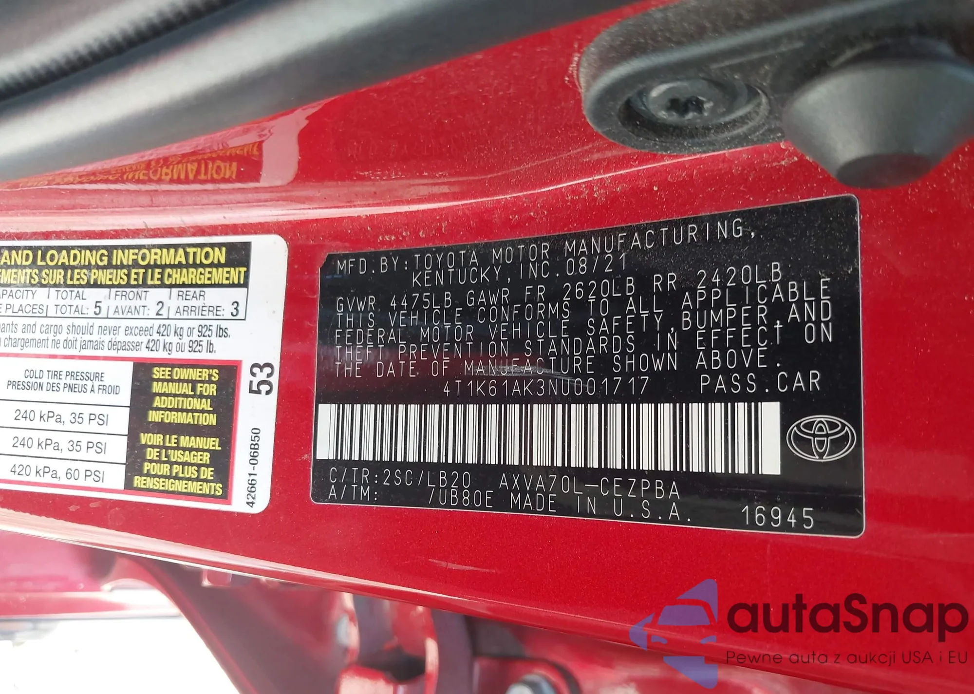 • VIN 4T1K61AK3NU001717