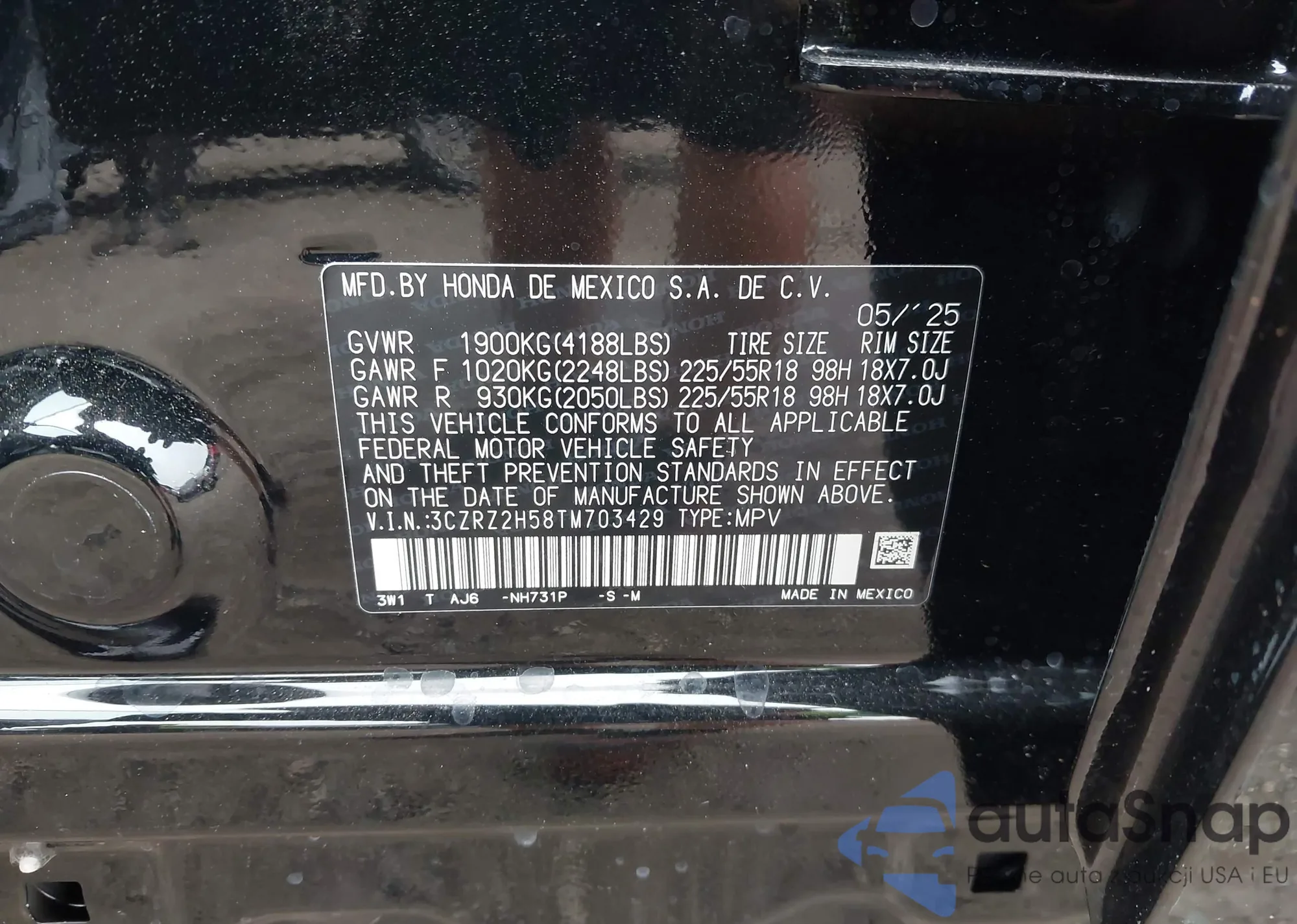 • VIN 3CZRZ2H58TM703429