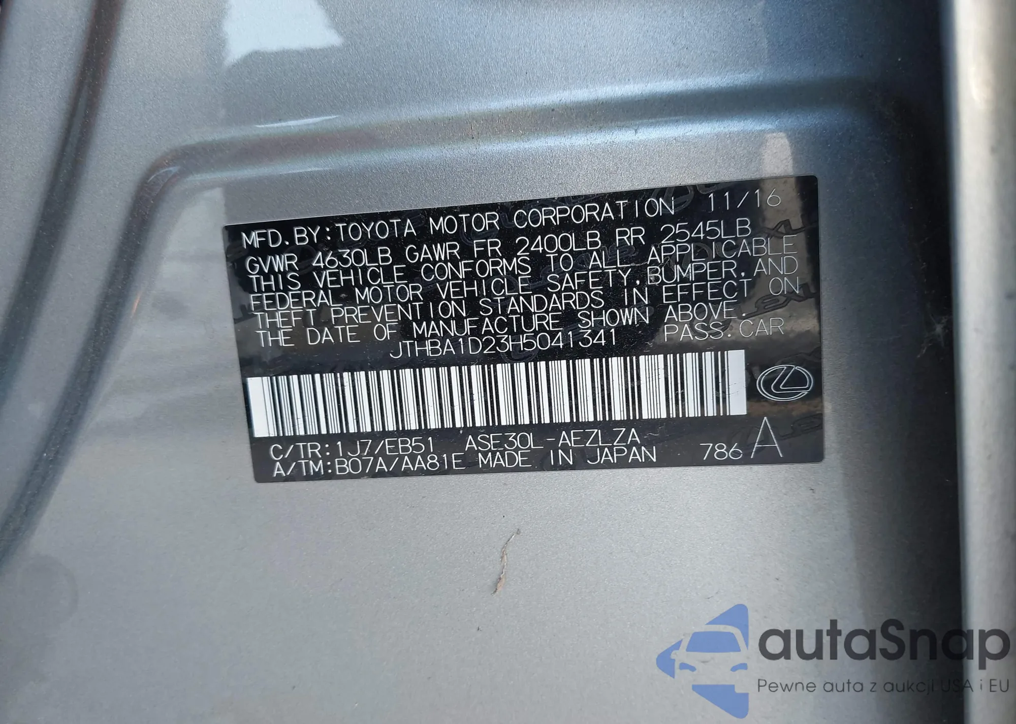 LOT: 43462040 VIN: JTHBA1D23H5041341