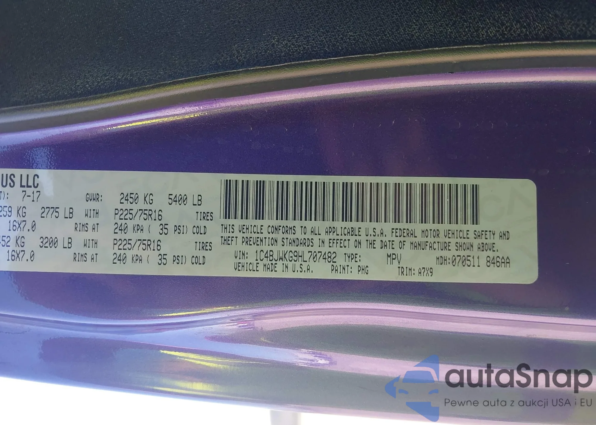 • VIN 2B3CJ7DW7AH190671