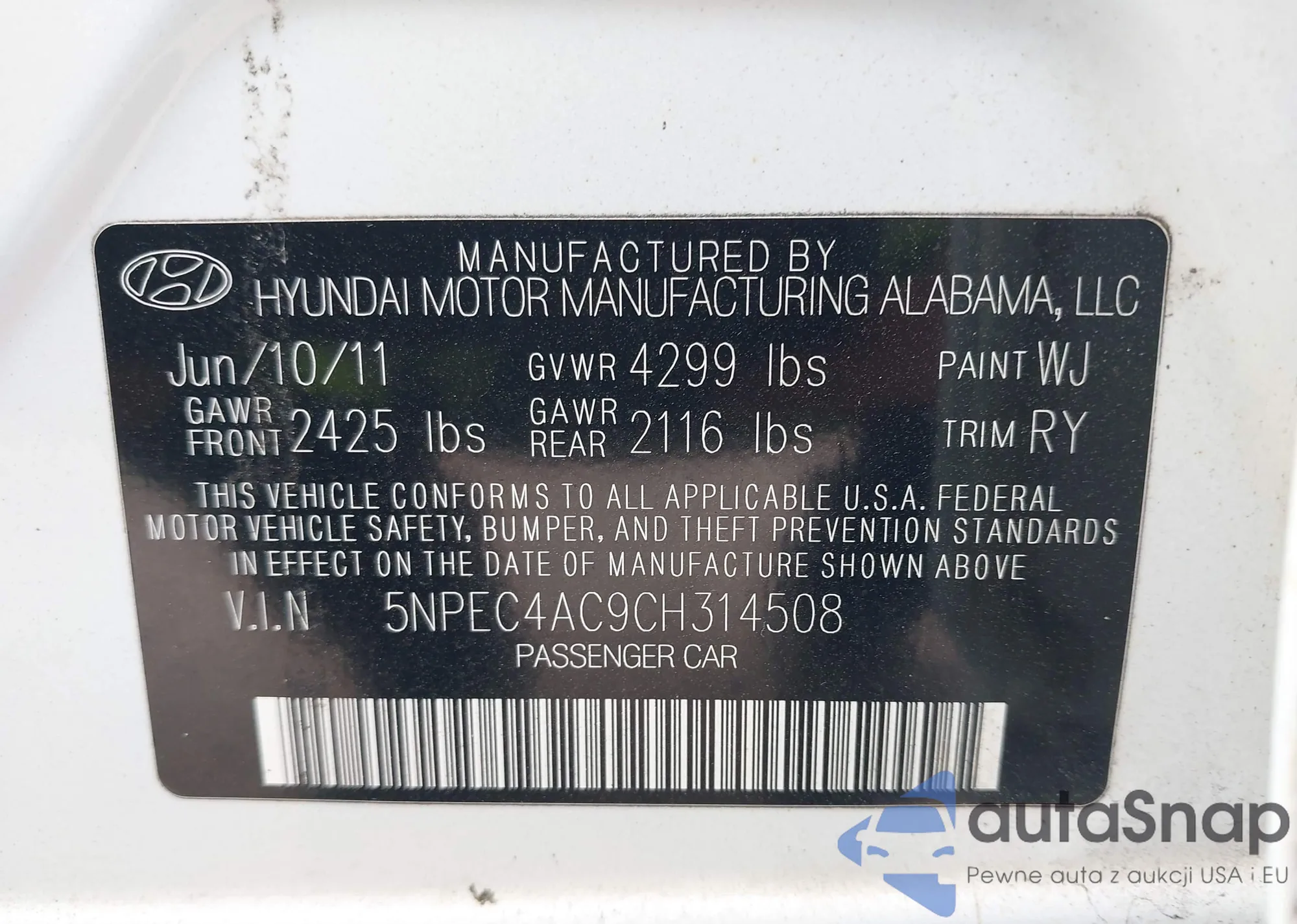 • VIN 5NPEC4AC9CH314508