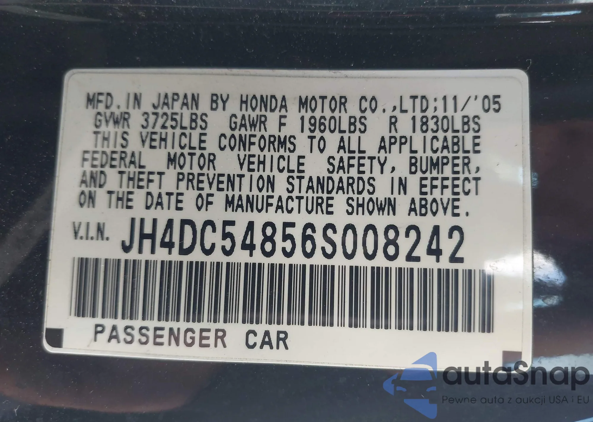 • VIN JH4DC54856S008242
