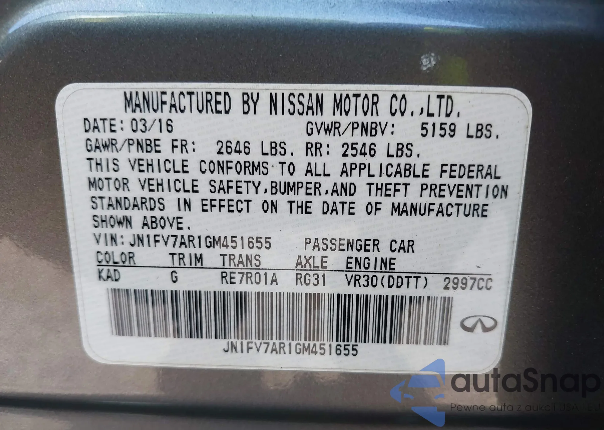 LOT: 43486060 VIN: WBA4A9C51GGL87974