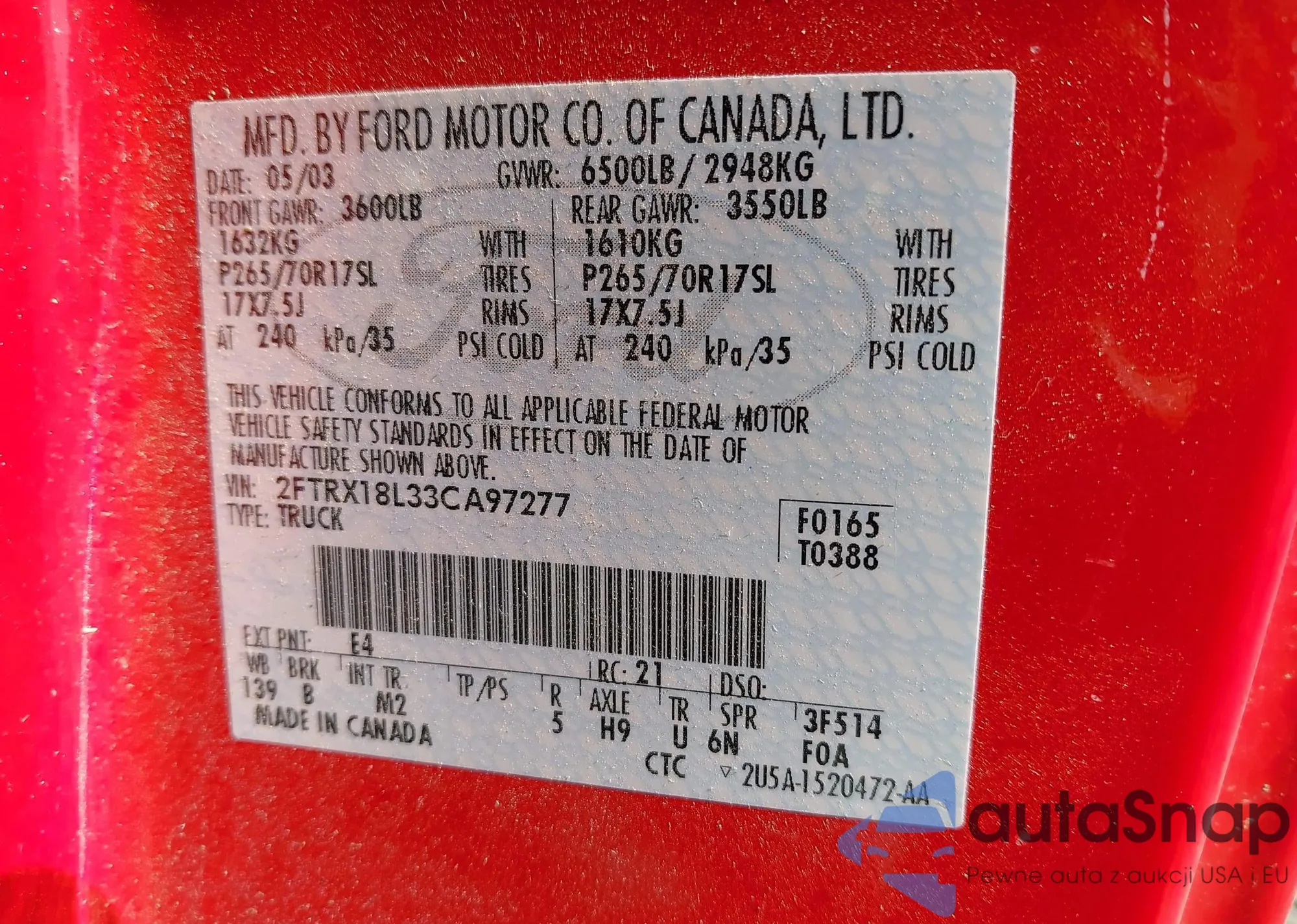 • VIN 2FTRX18L33CA97277