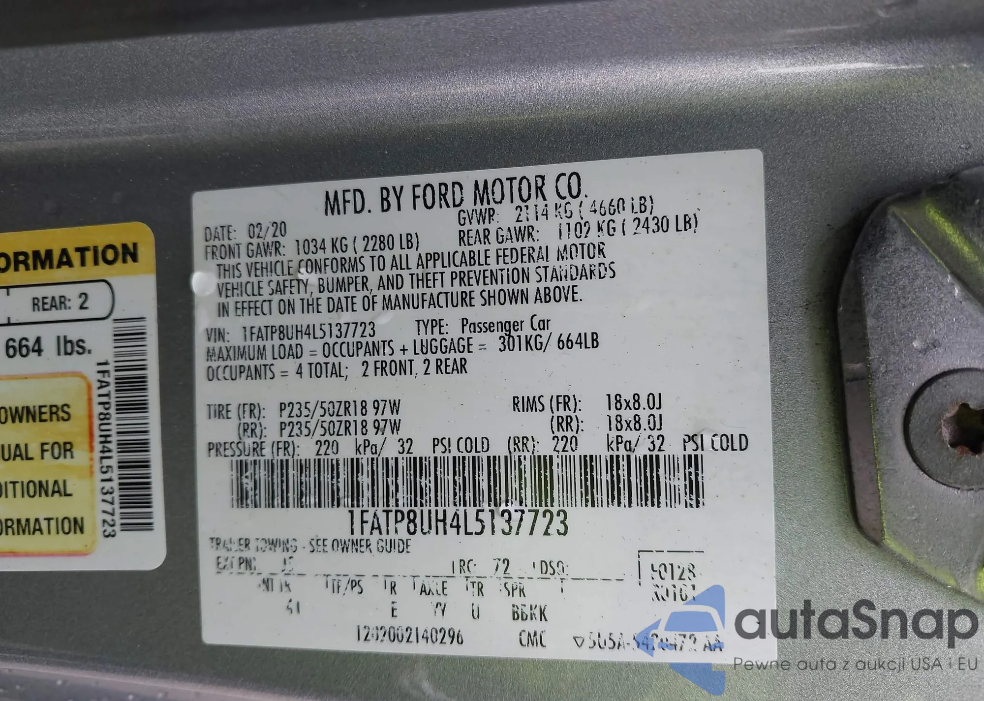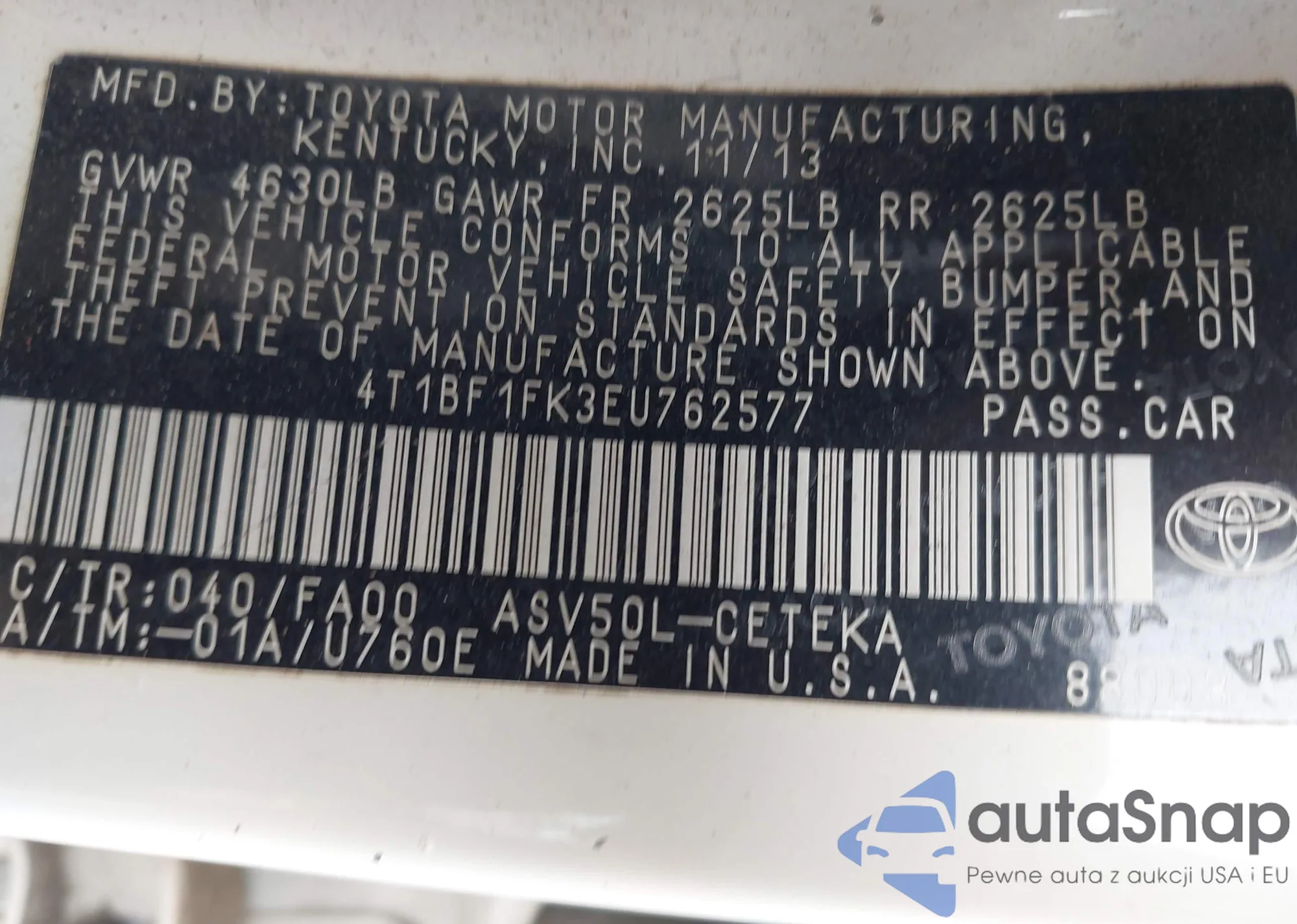 LOT: 43214066 VIN: 2T3W1RFV2LC072172
