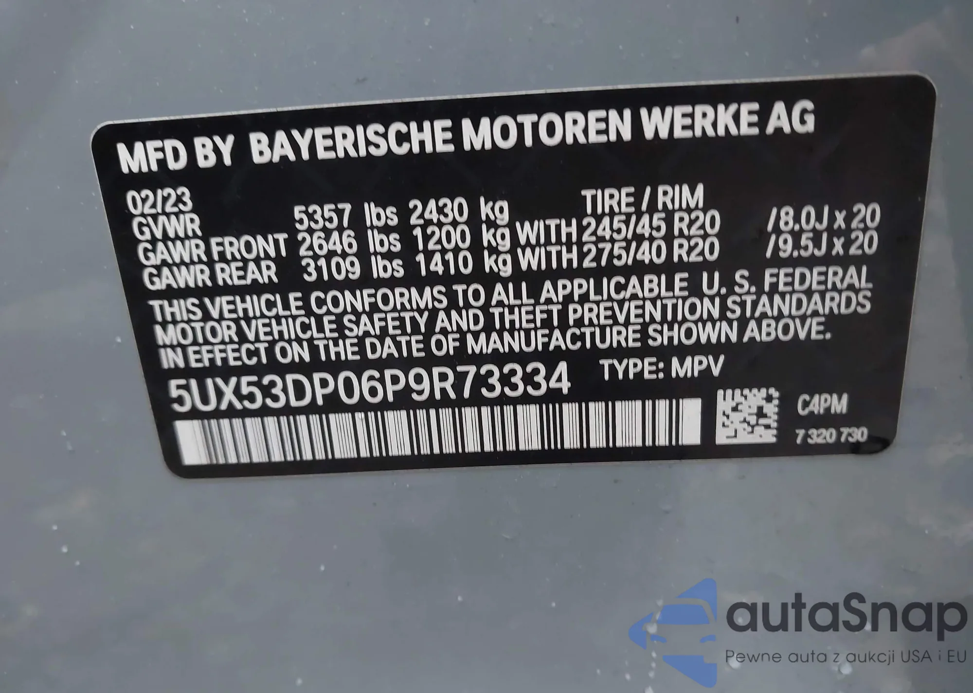 • VIN 5UX53DP06P9R73334