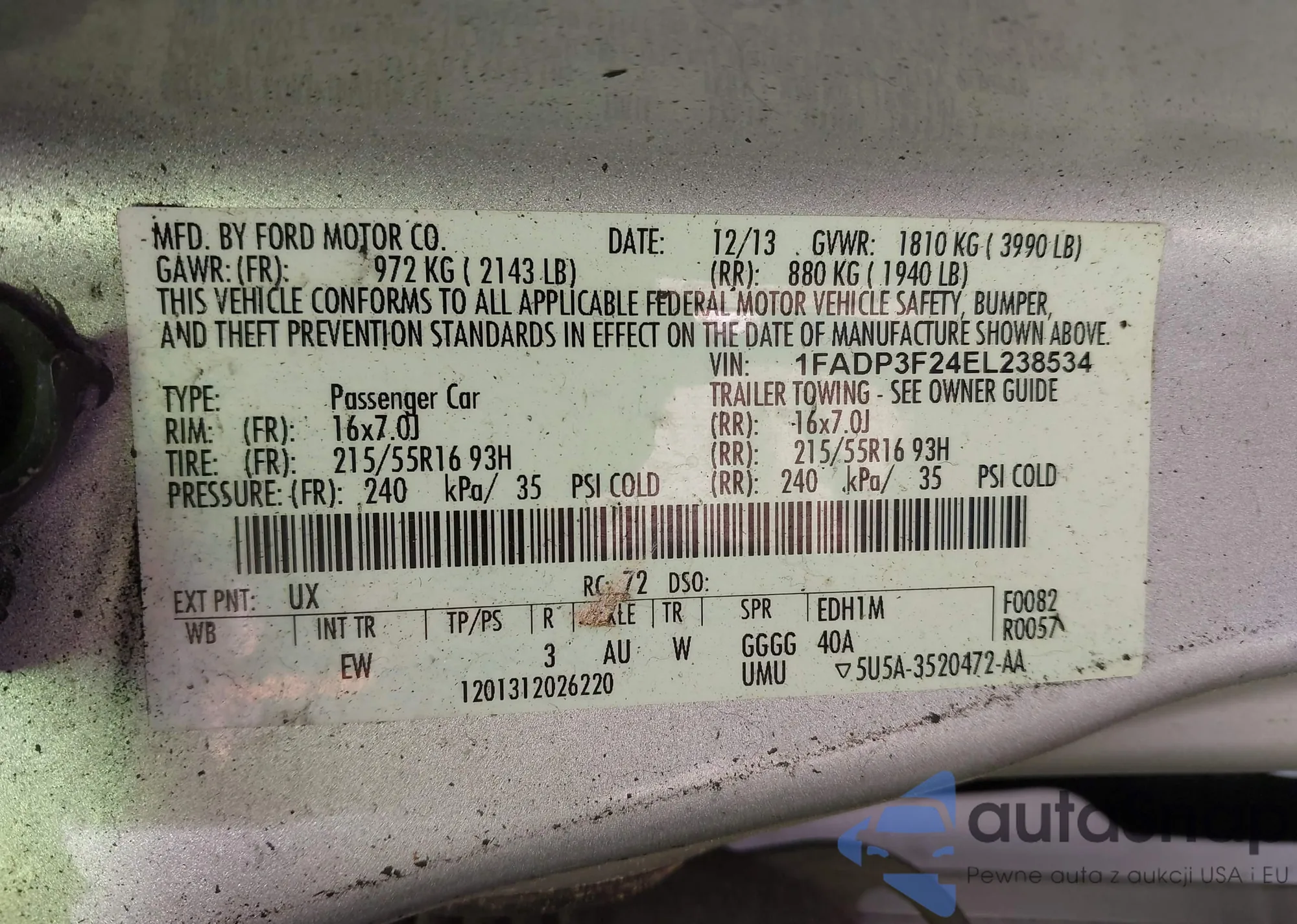 LOT: 43080115 VIN: 1FADP3F24EL238534