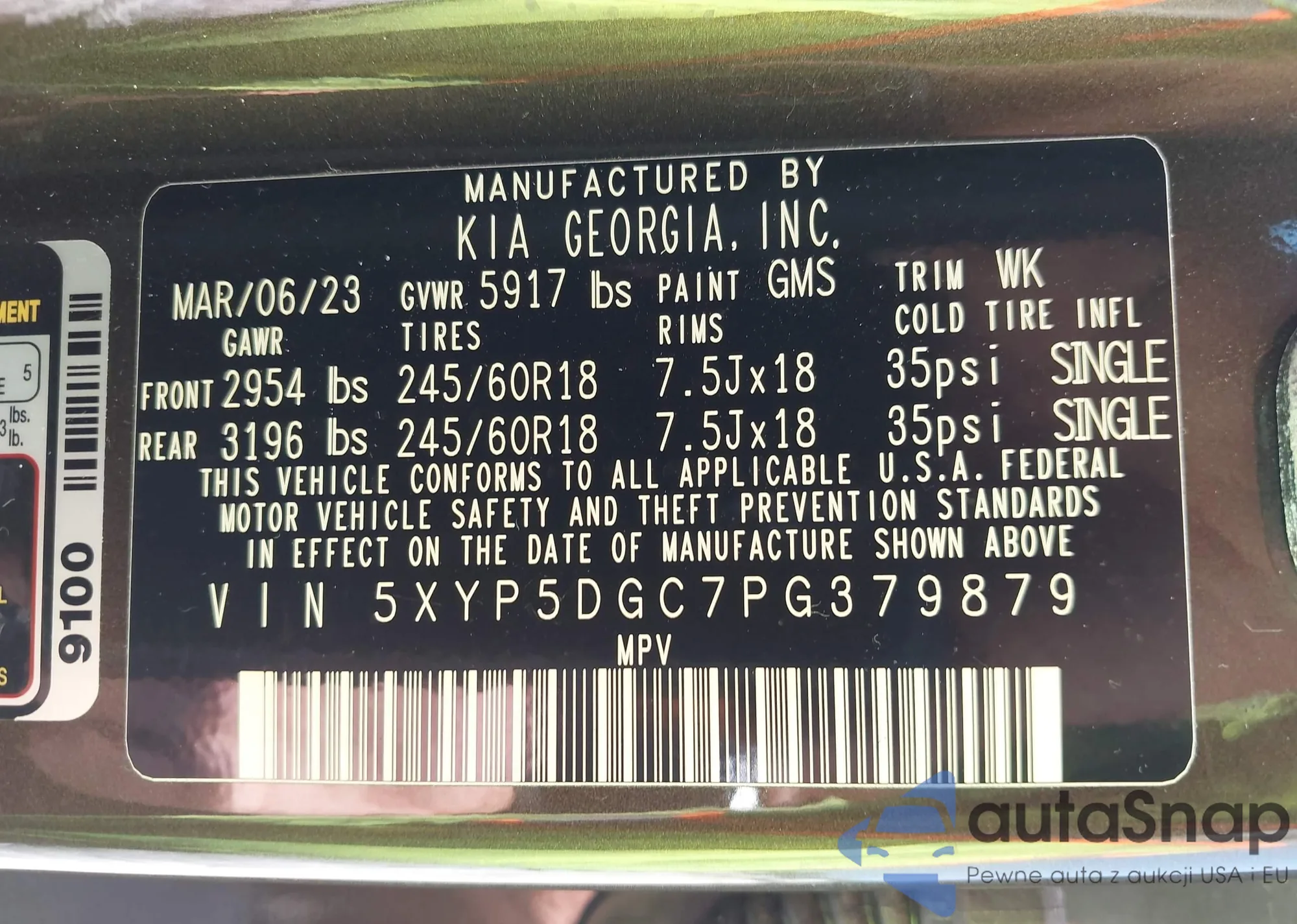 LOT: 43102716 VIN: 5XYP5DGC7PG379879