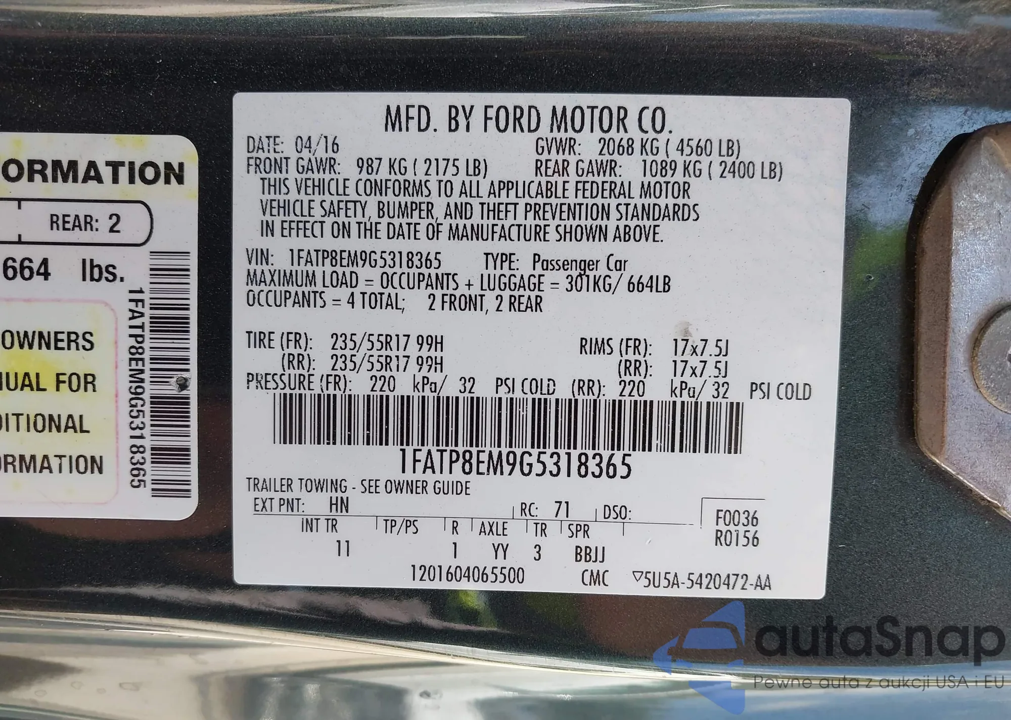 LOT: 43080367 VIN: 3FA6P0K99FR157719