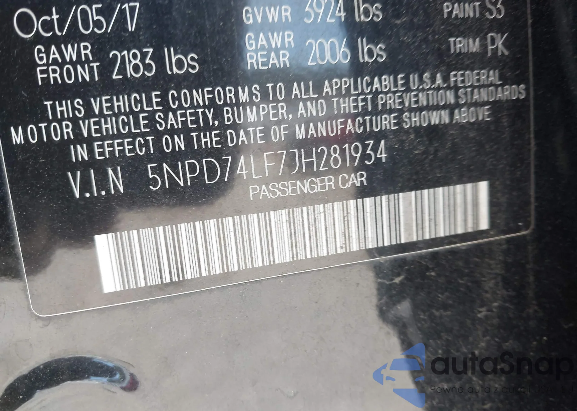 • VIN 5NPD74LF7JH281934