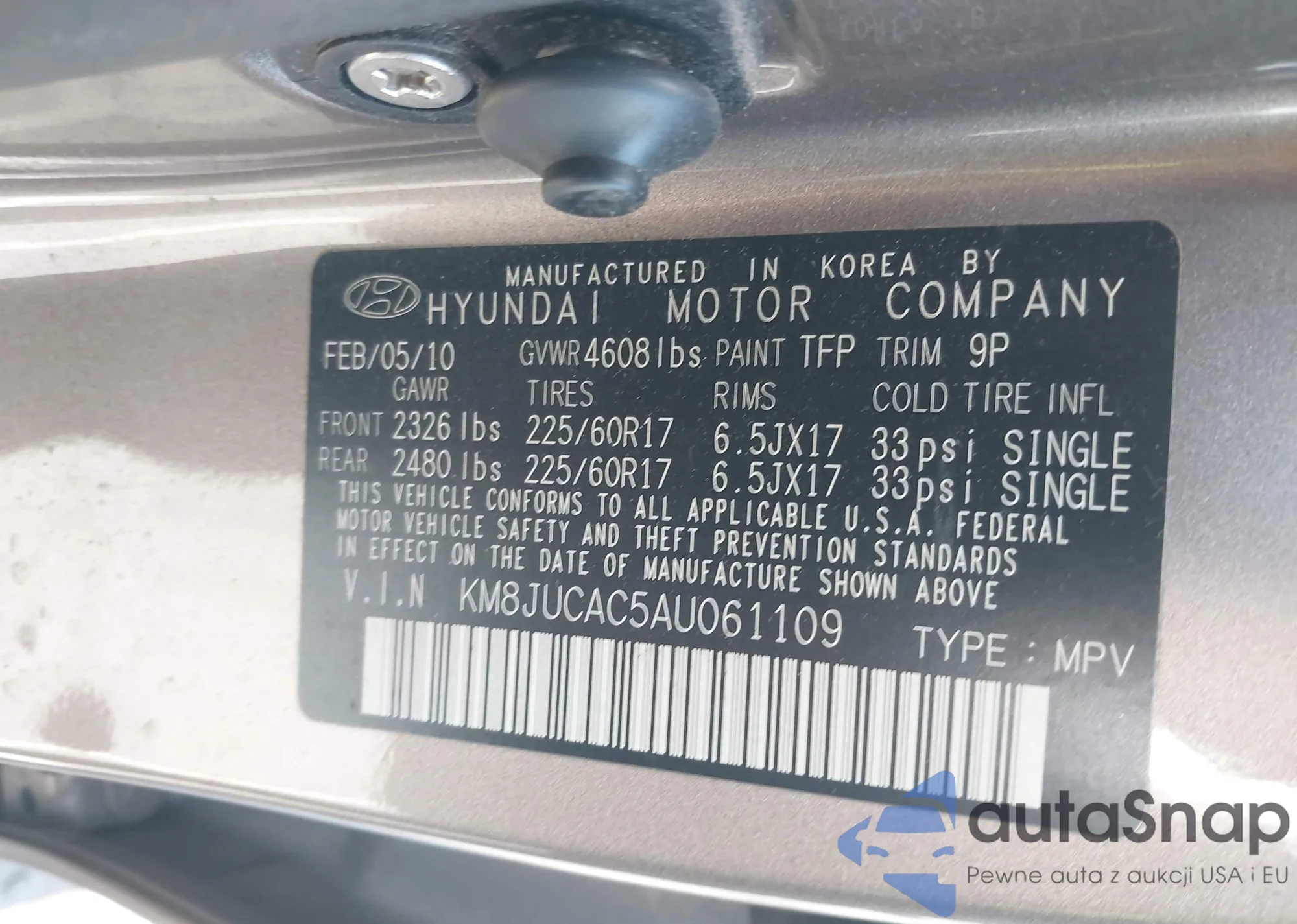 • VIN KM8JUCAC5AU061109