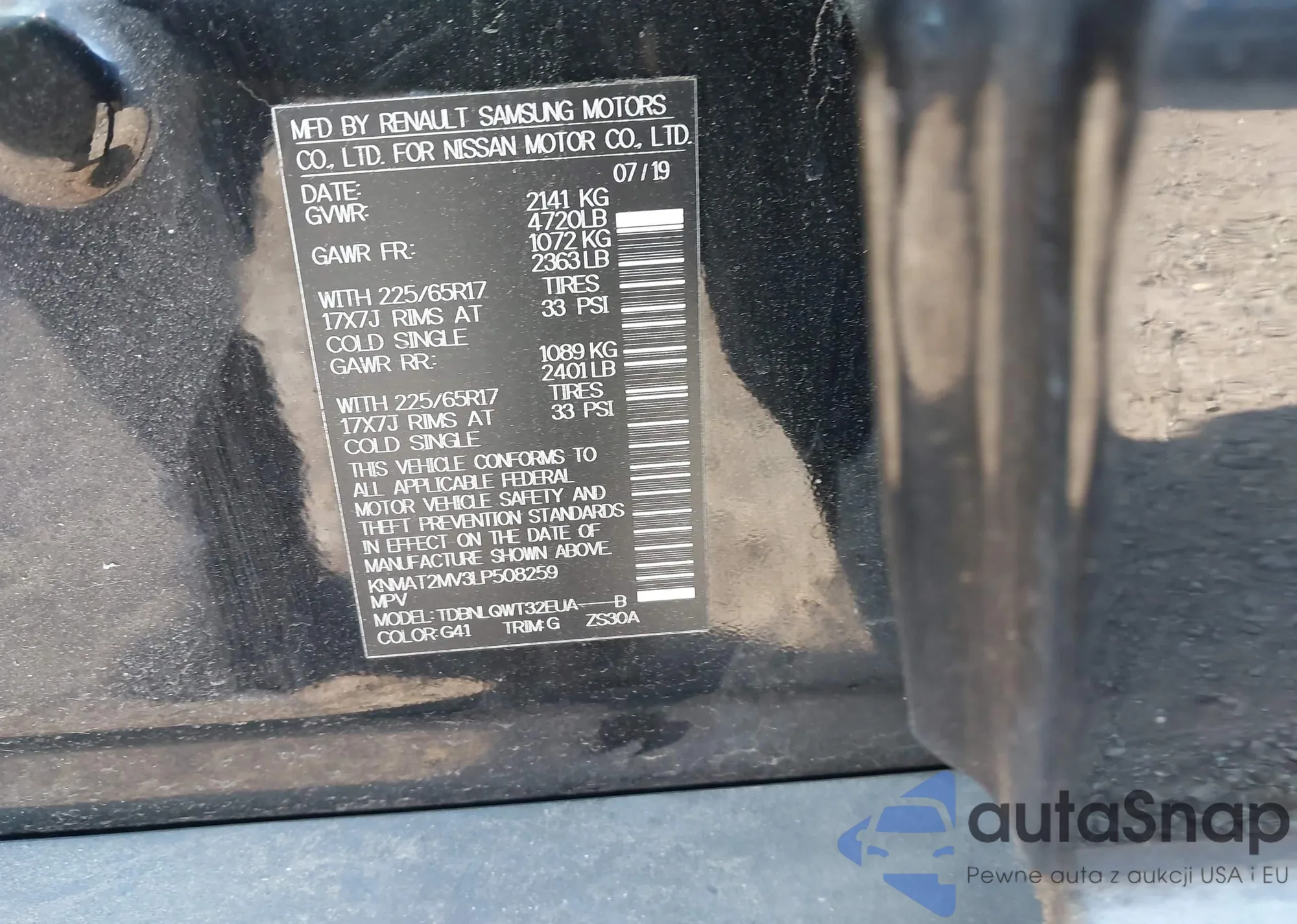 LOT: 42952322 VIN: KNMAT2MV3LP508259