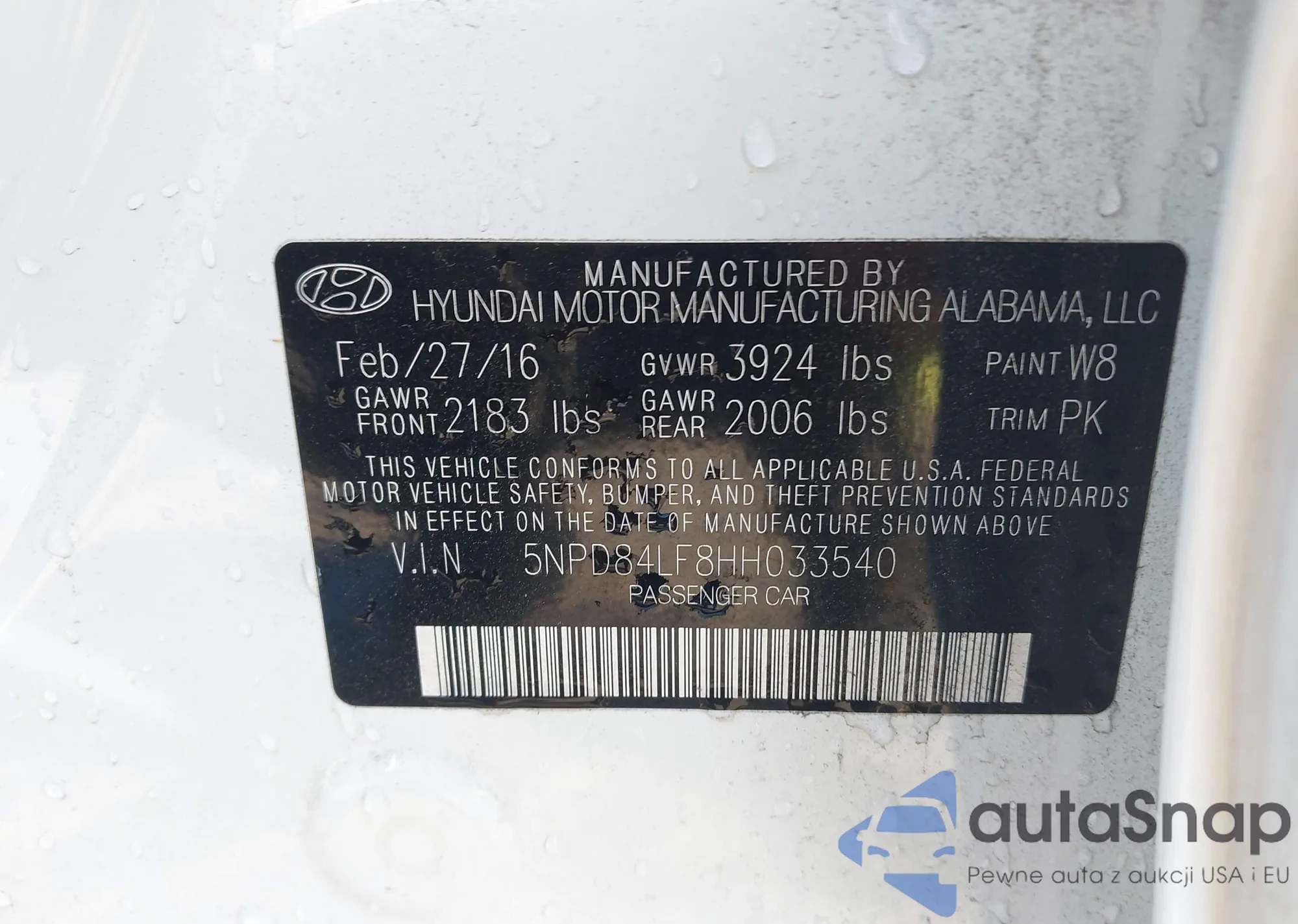 • VIN 5NPD84LF8HH033540