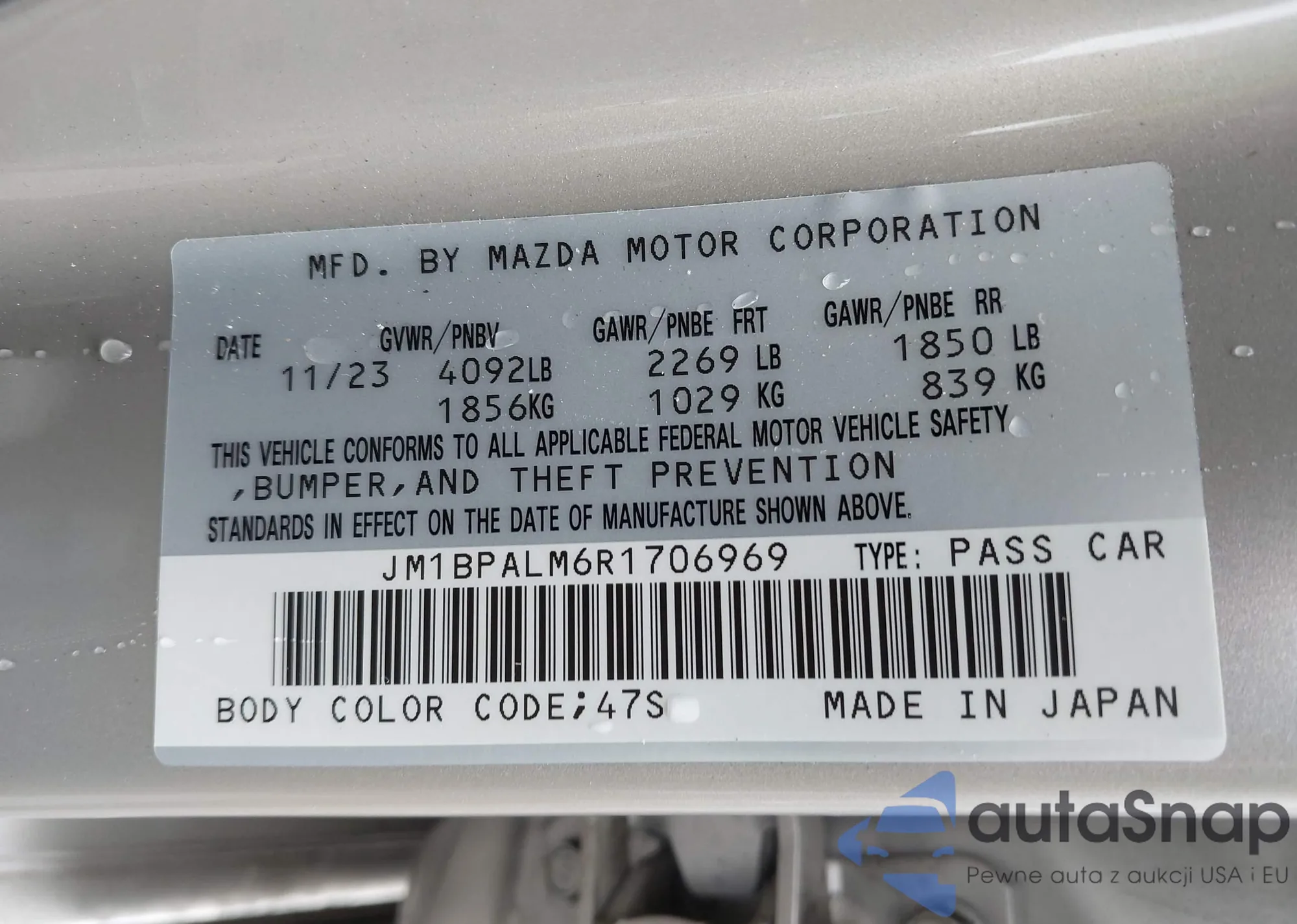 • VIN JM1BPALM6R1706969