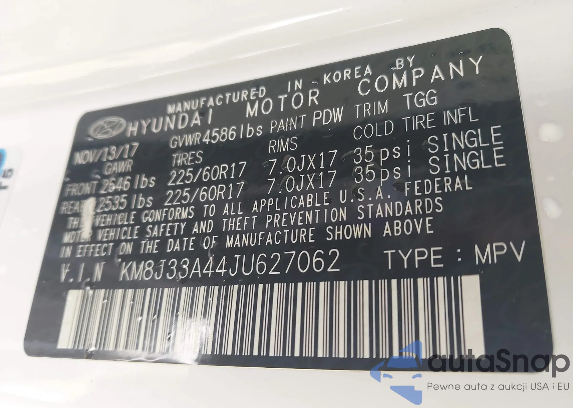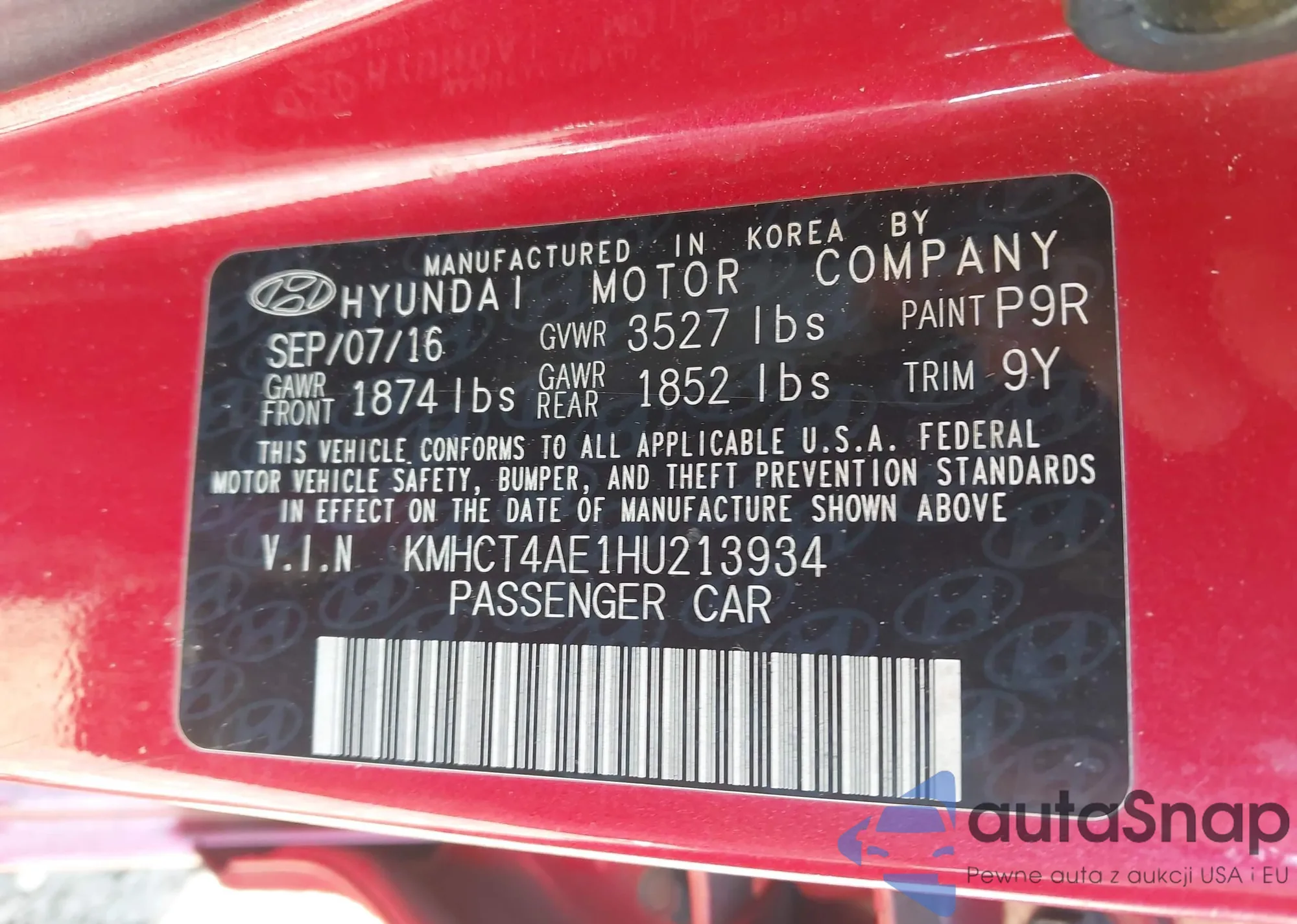 • VIN KMHCT4AE1HU213934