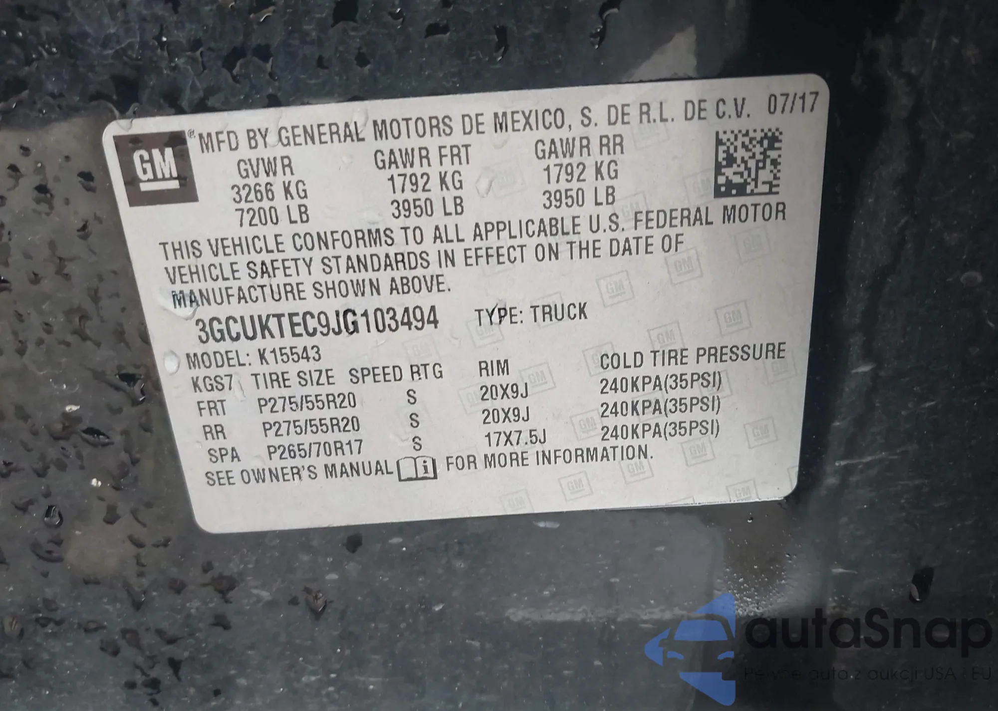 • VIN 3GCUKTEC9JG103494