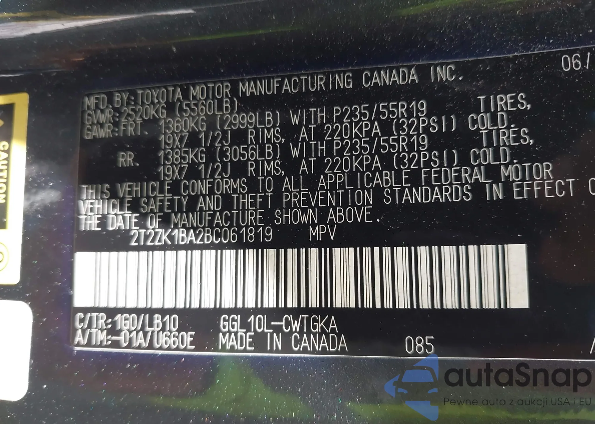 • VIN 2T2ZK1BA2BC061819