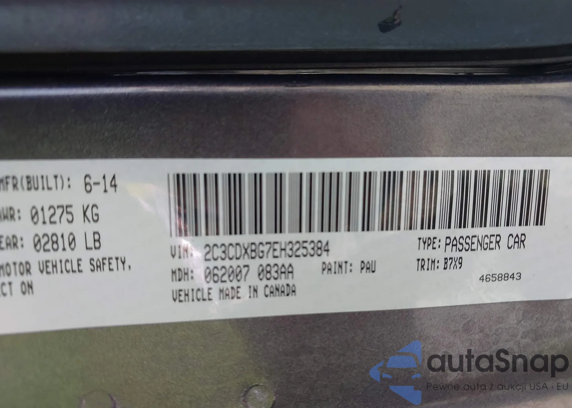 • VIN 2C3CDXBG7EH325384