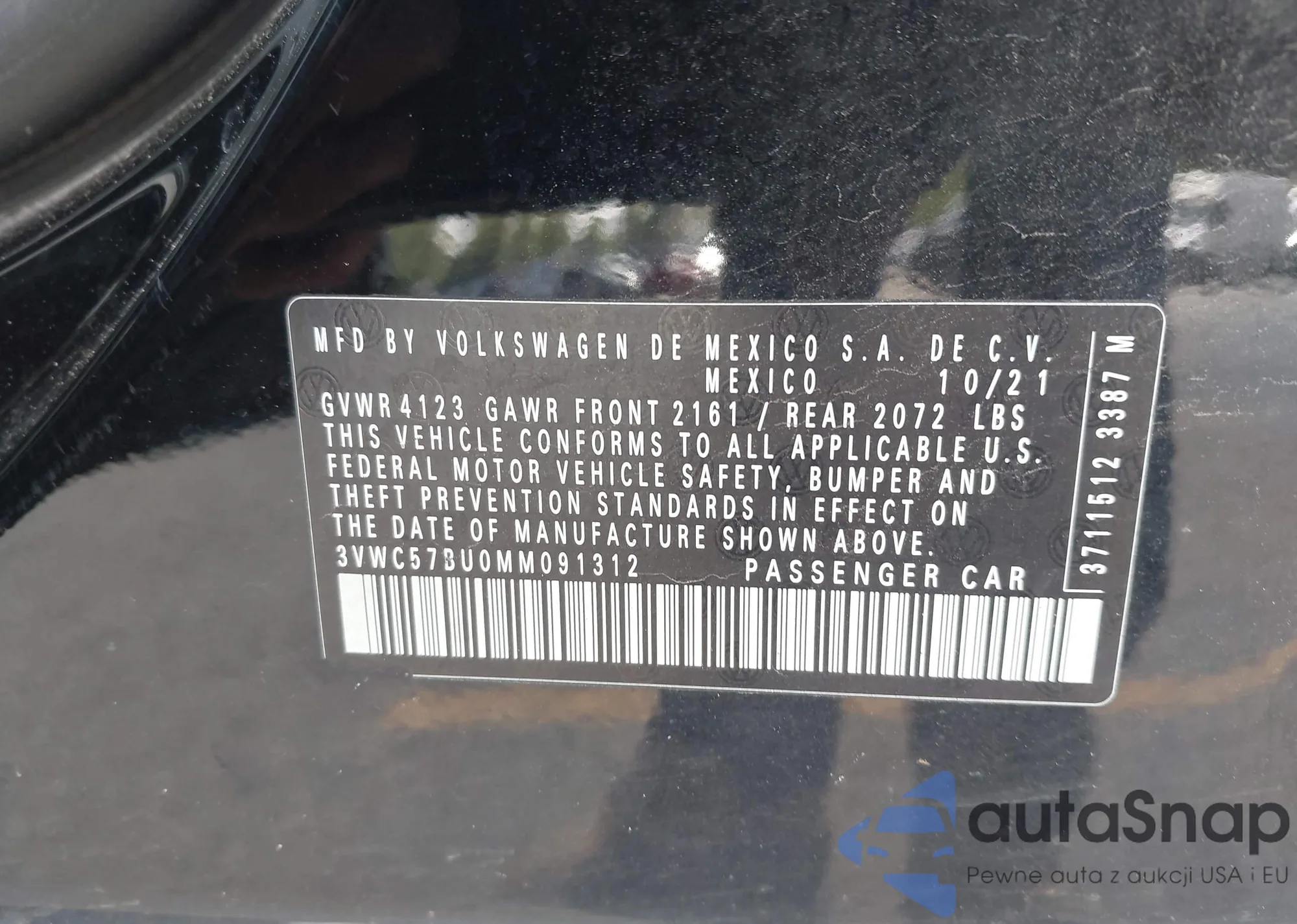 • VIN 3VWC57BU0MM091312