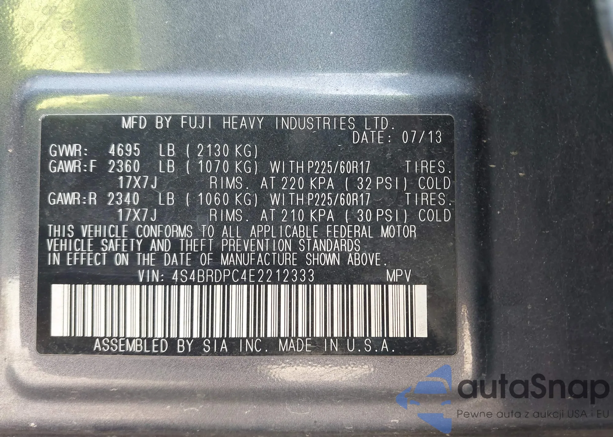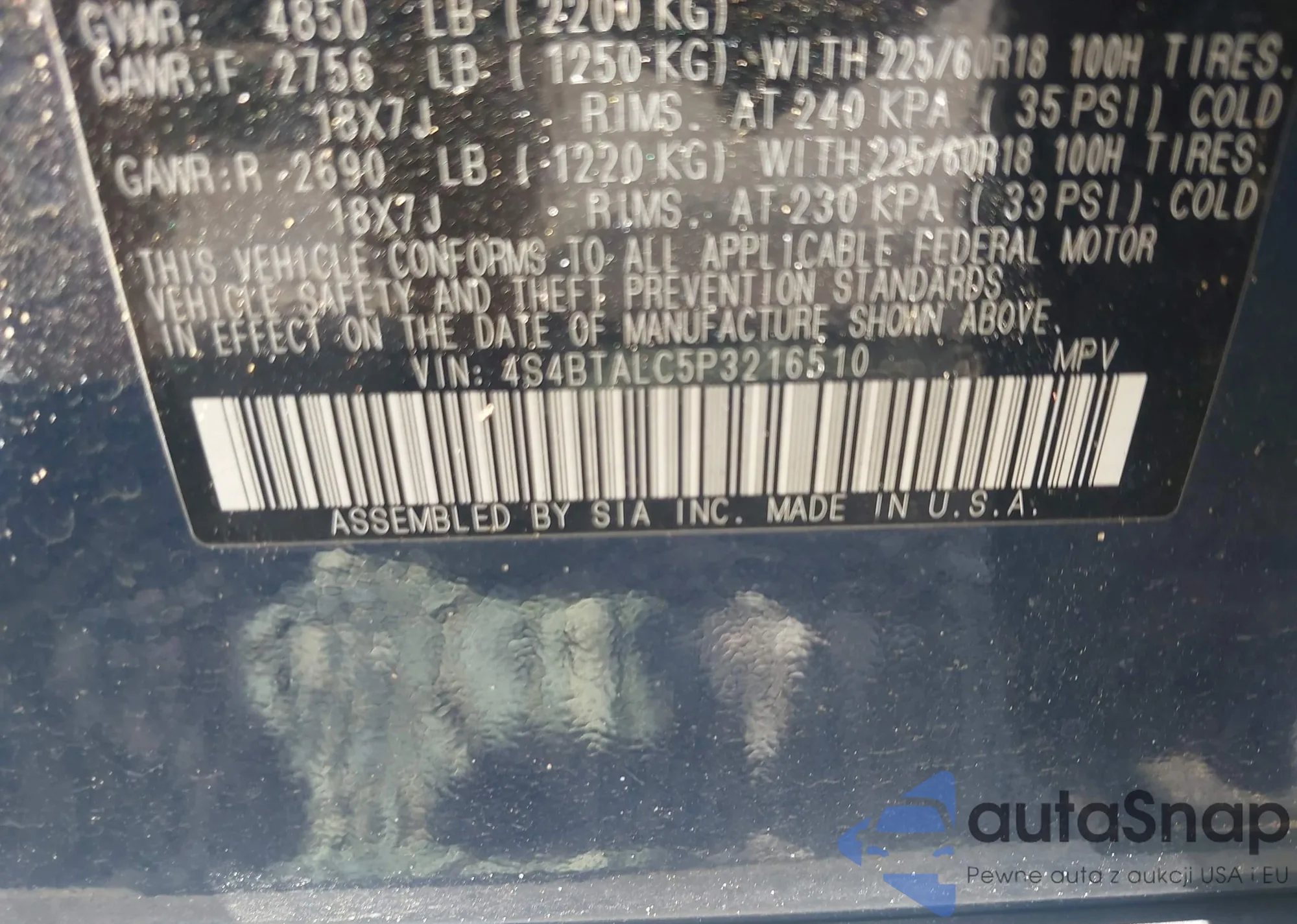 • VIN 4S4BTALC5P3216510