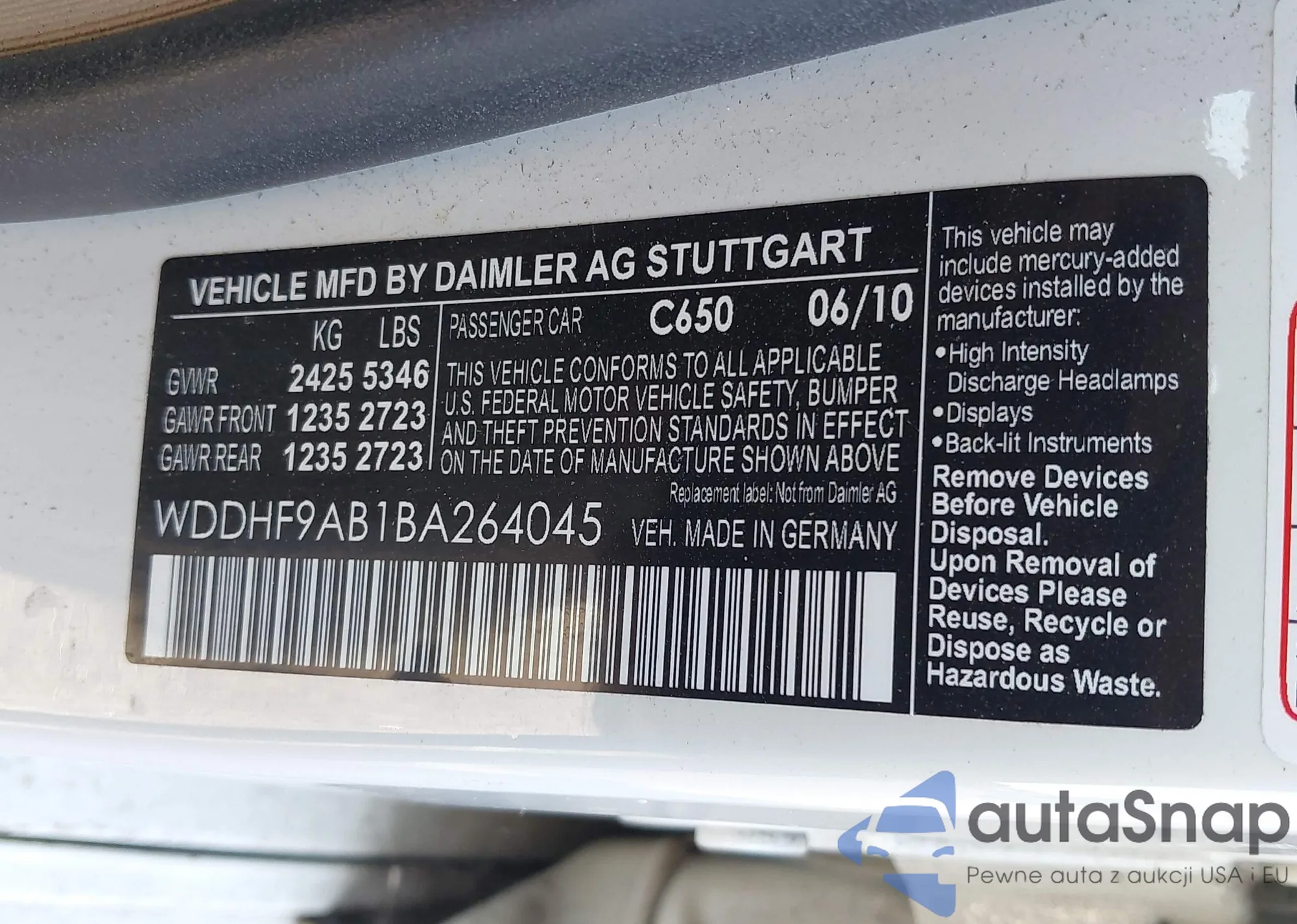 LOT: 43116873 VIN: WDDHF9AB1BA264045