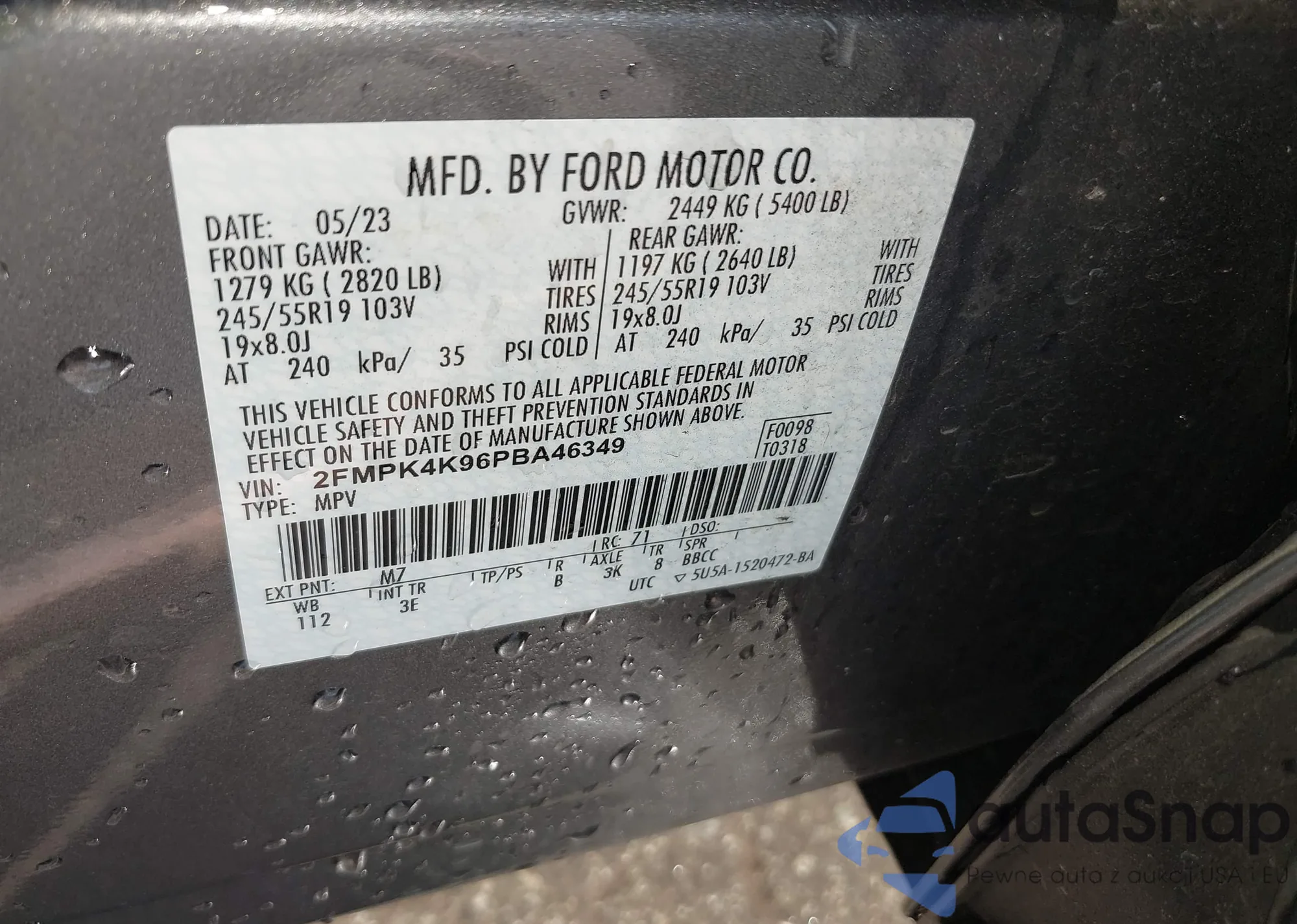 LOT: 43125927 VIN: 2FMPK4K96PBA46349