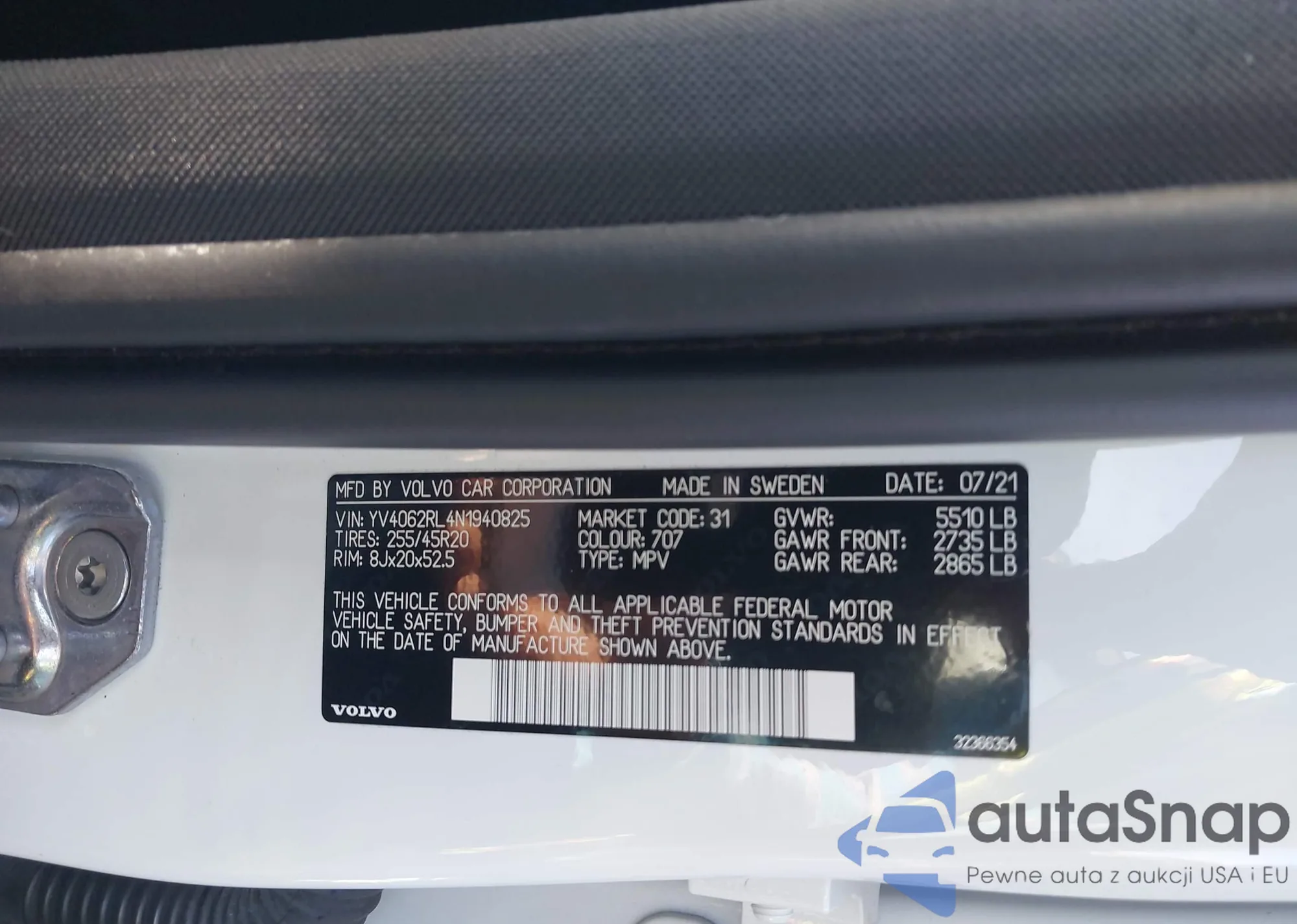 LOT: 43126012 VIN: YV4062RL4N1940825