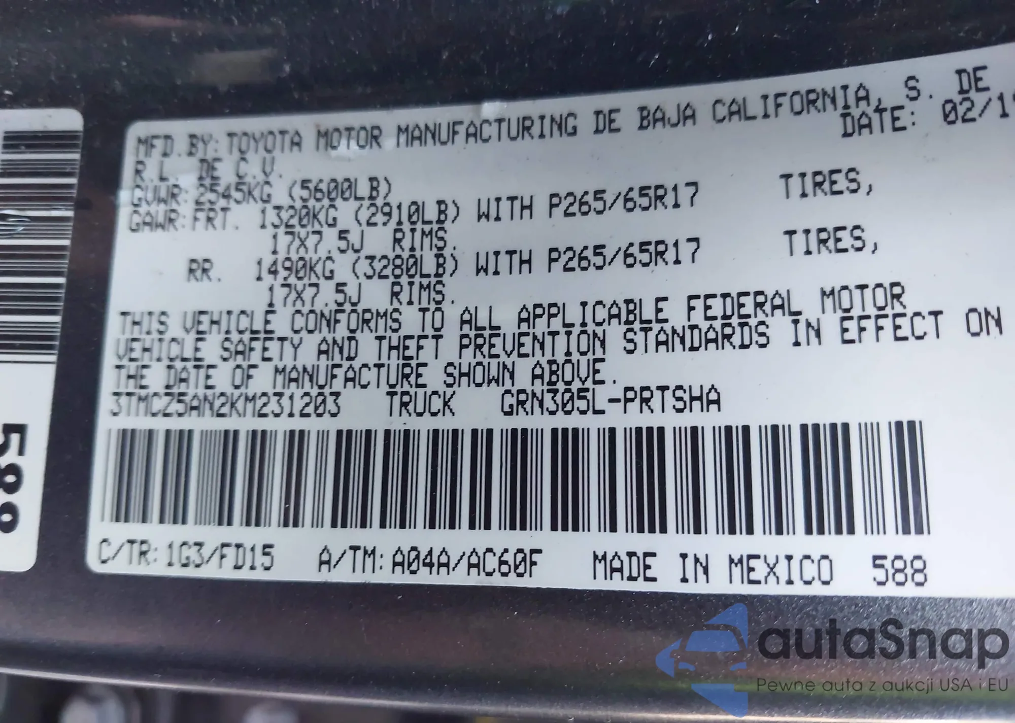 LOT: 43196225 VIN: 3VV0B7AXXJM107104