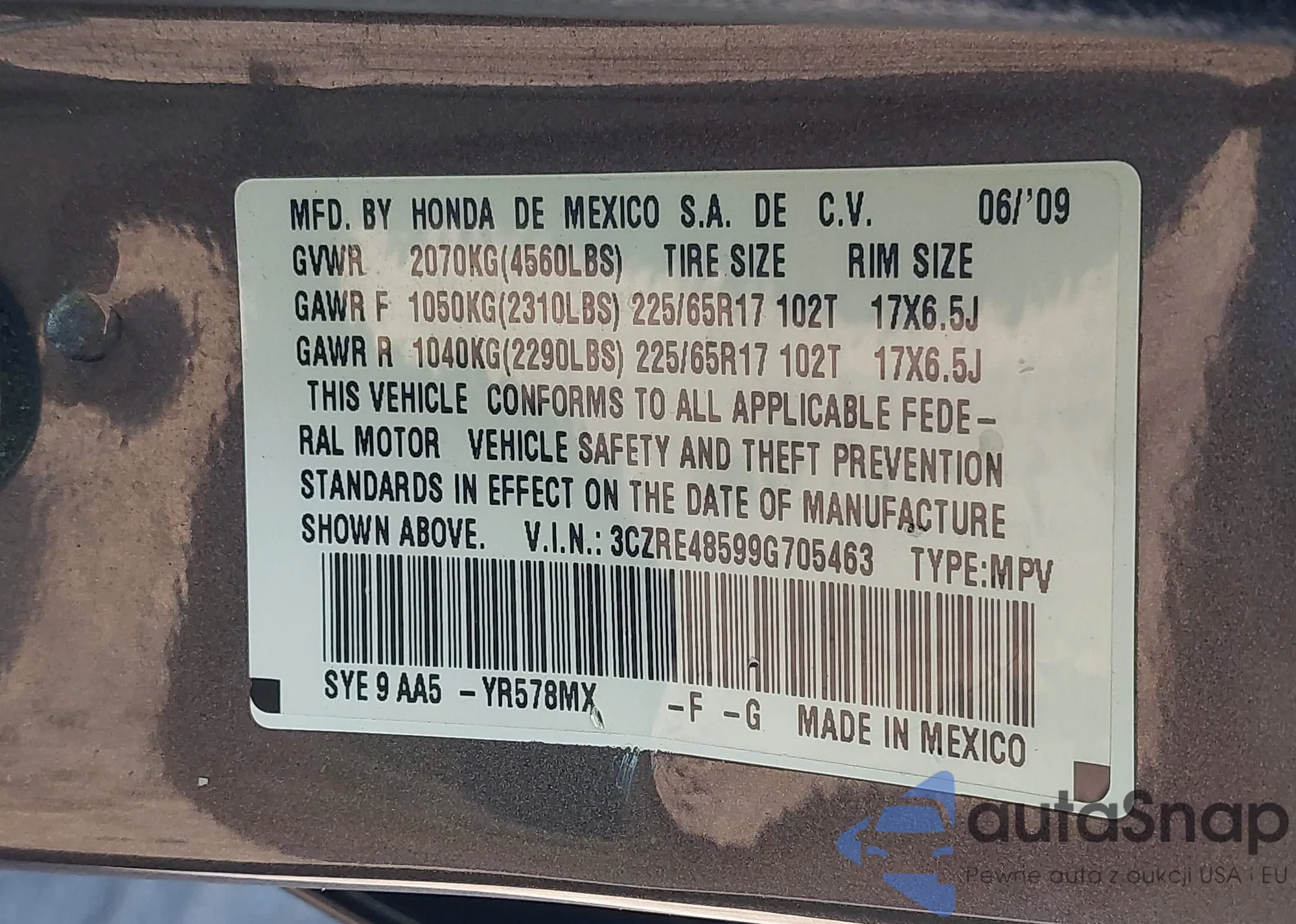LOT: 41325139 VIN: 3CZRE48599G705463