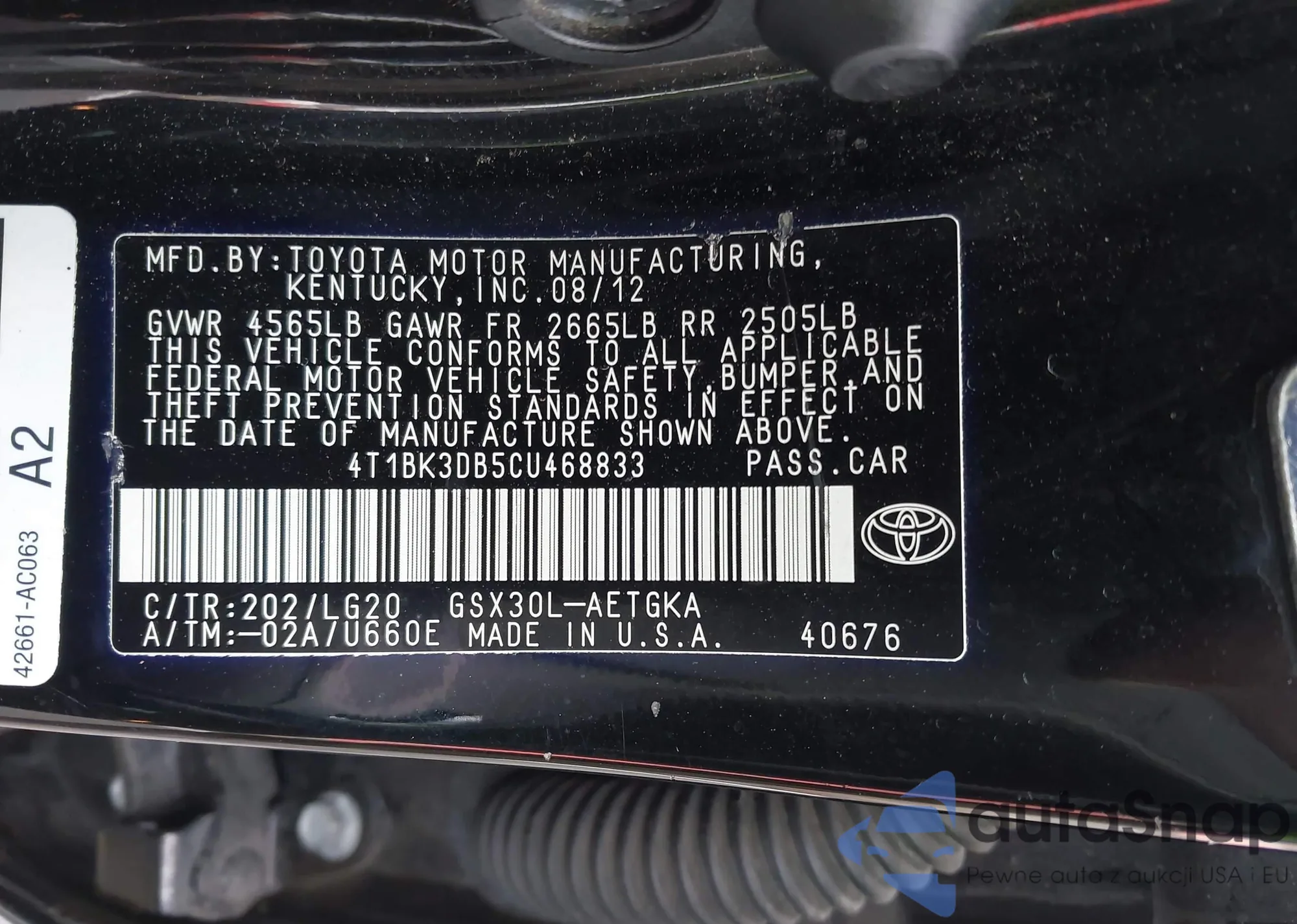 • VIN 4T1BK3DB5CU468833