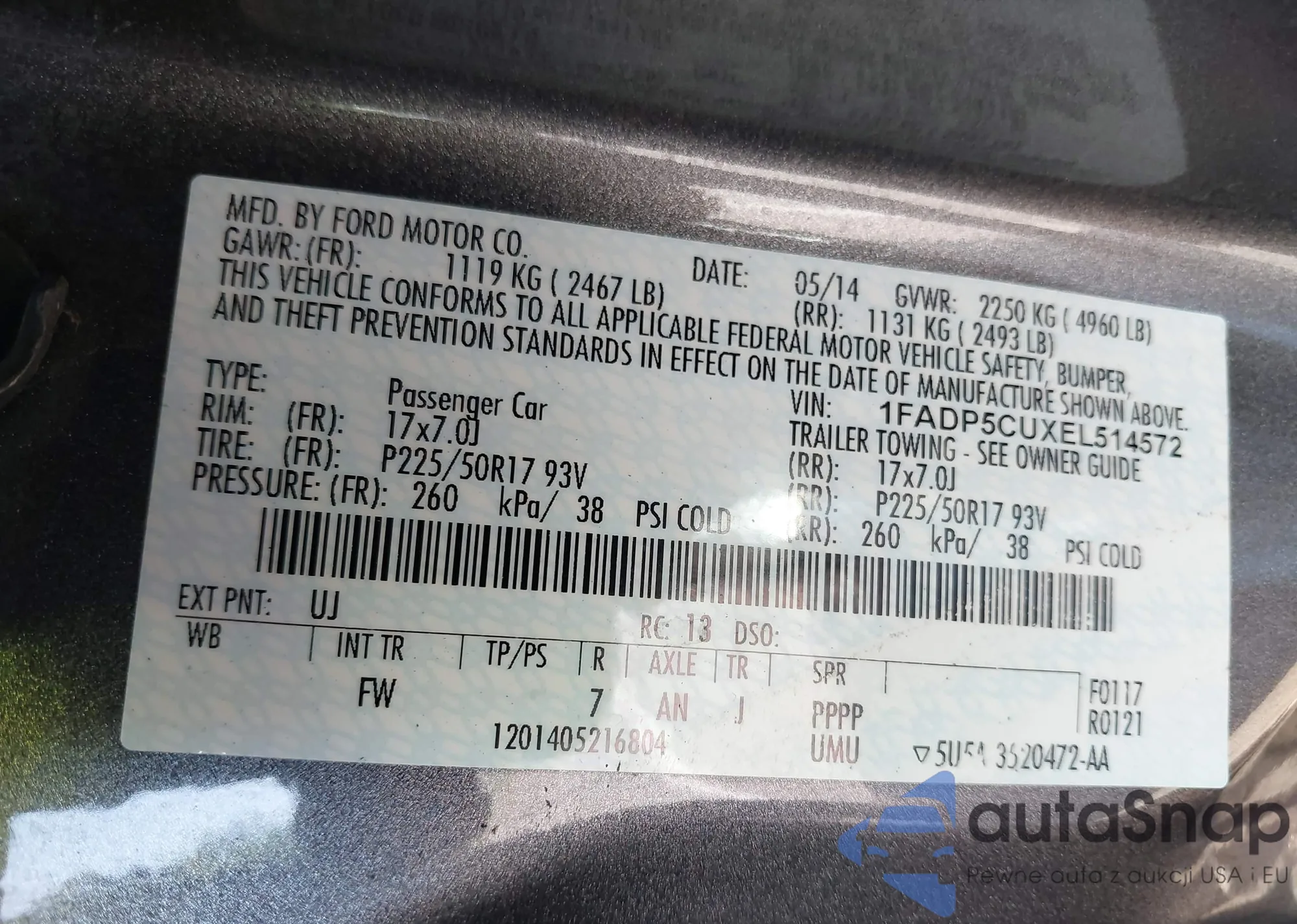 LOT: 41763100 VIN: JTDKN3DU2B1458693