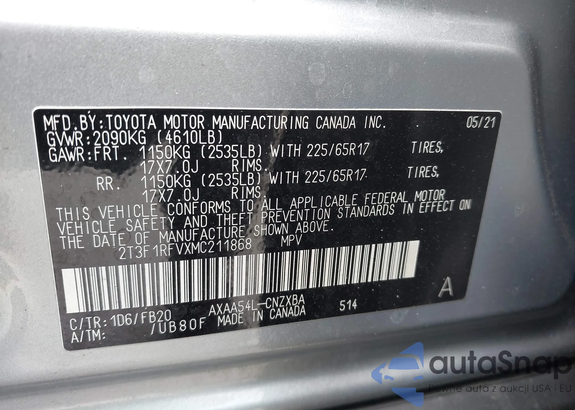 • VIN JTHBA1D21J5068737