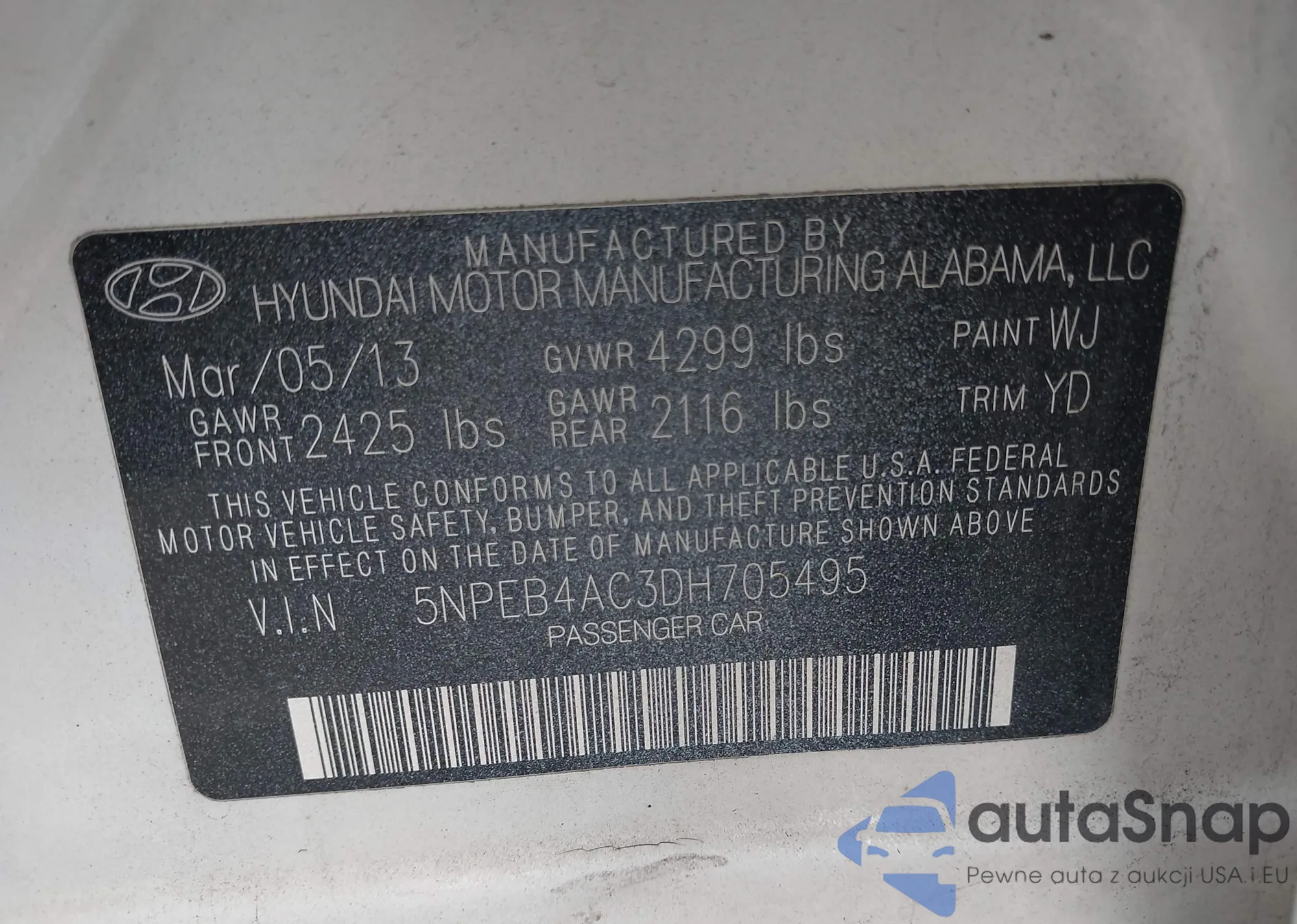 LOT: 42618010 VIN: 5NPDH4AE3DH162158