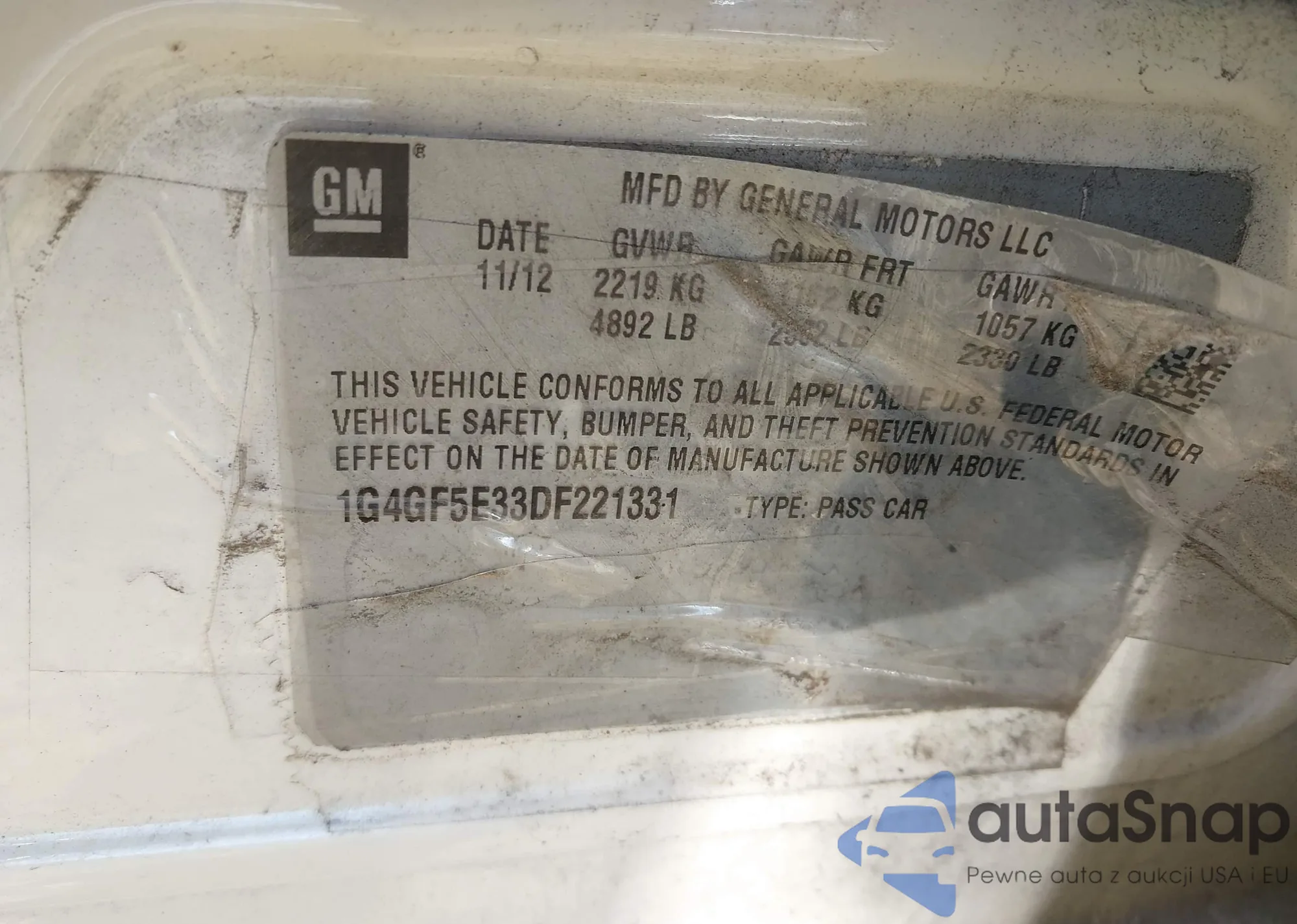 • VIN 1G4GF5E33DF221331