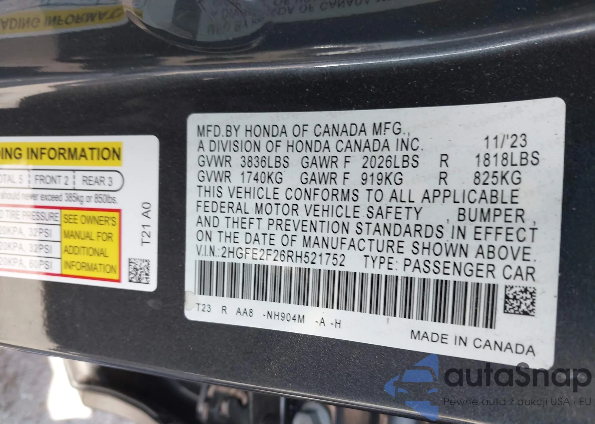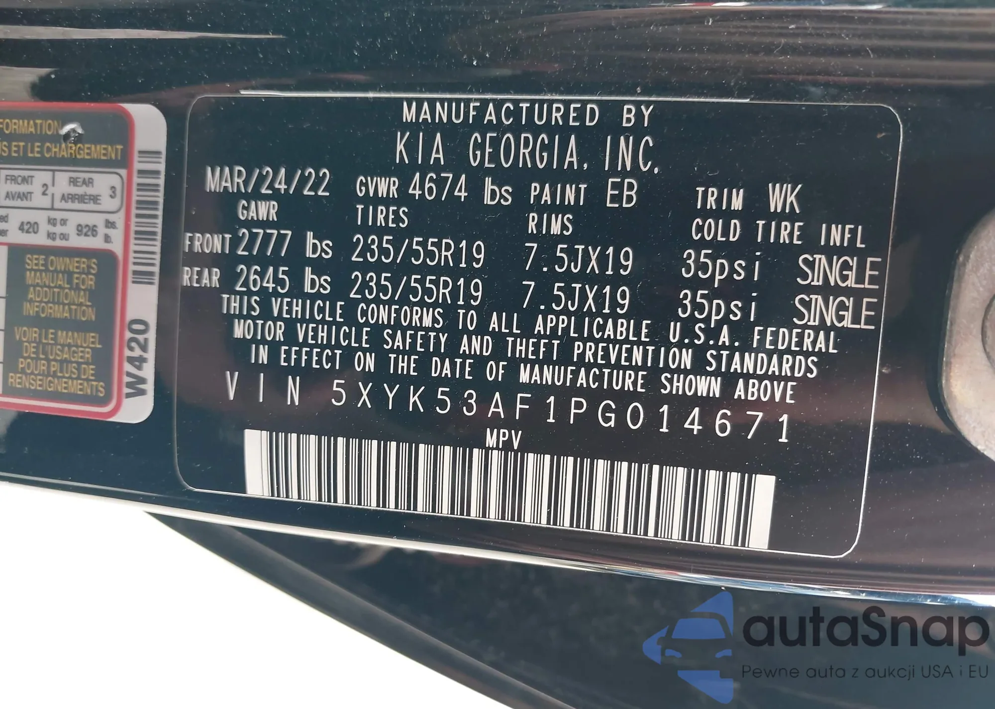 • VIN 5XYK53AF1PG014671
