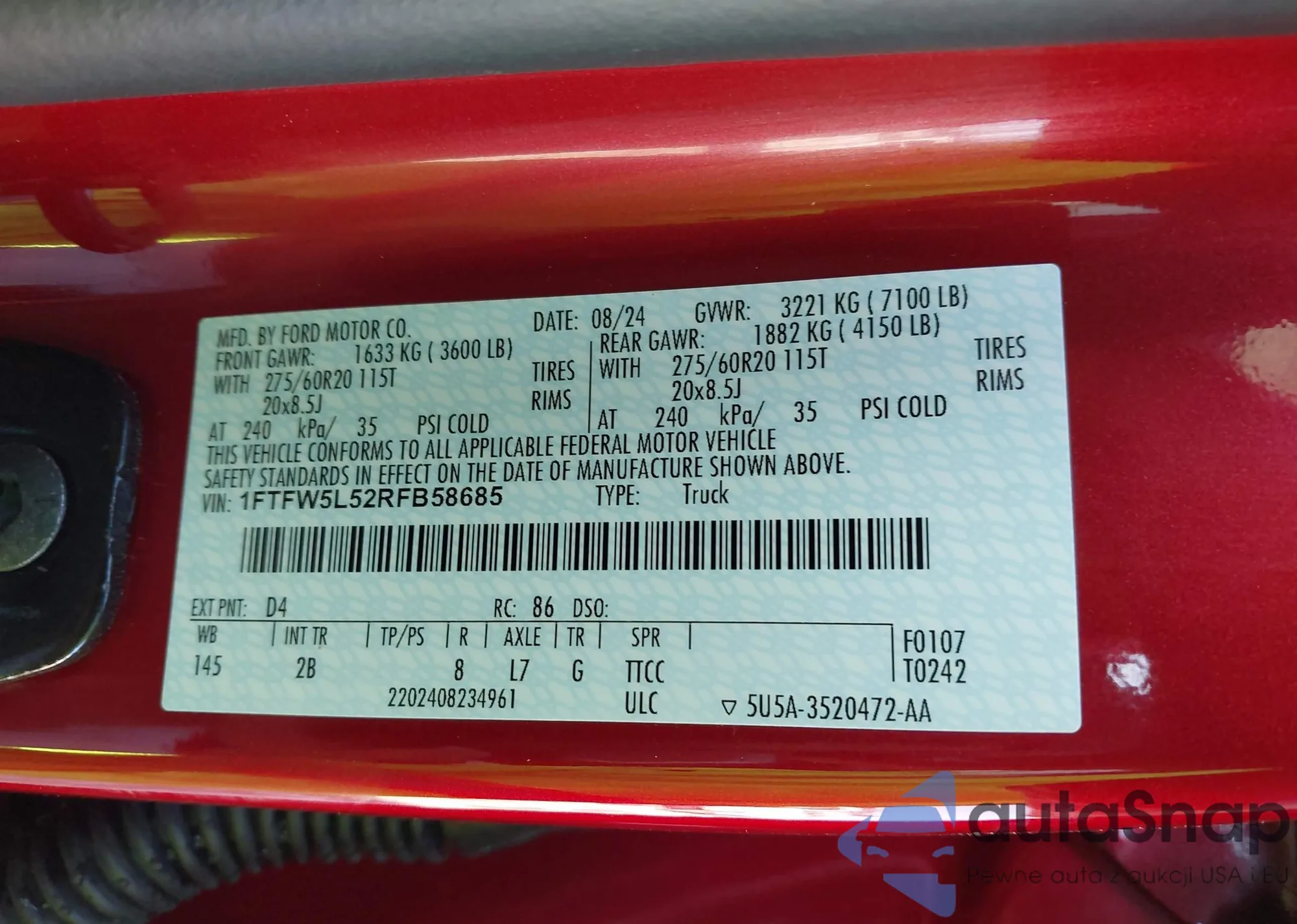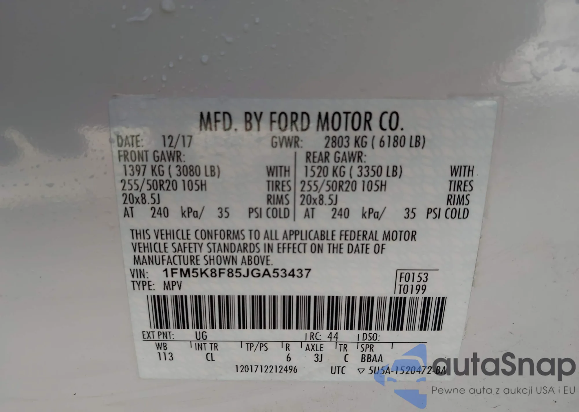 LOT: 43345551 VIN: 1FM5K8F85JGA53437