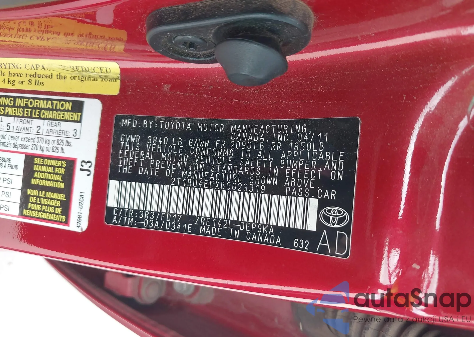 • VIN 2T1BU4EEXBC623319