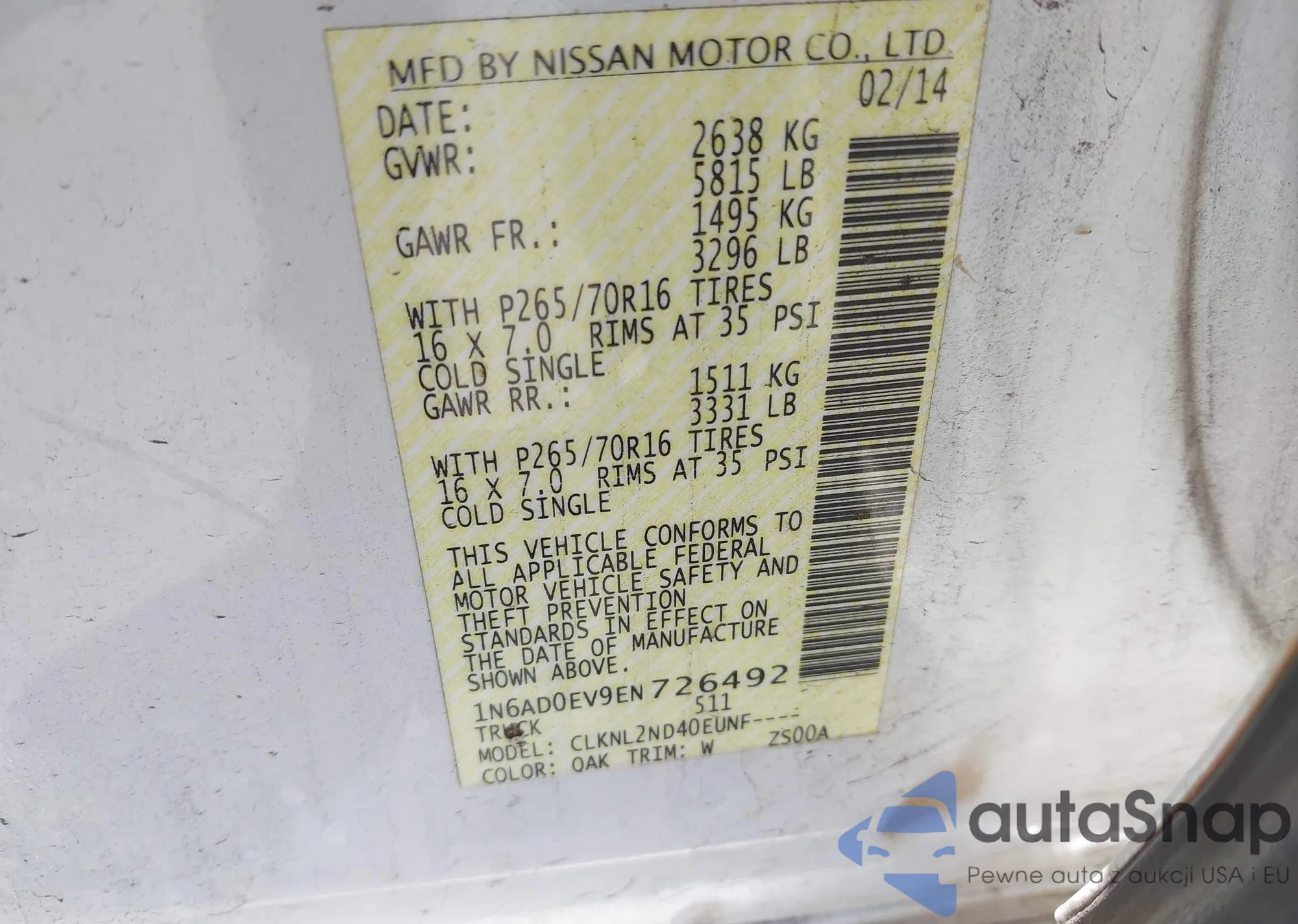 LOT: 42749752 VIN: 1N6AD0EV9EN726492