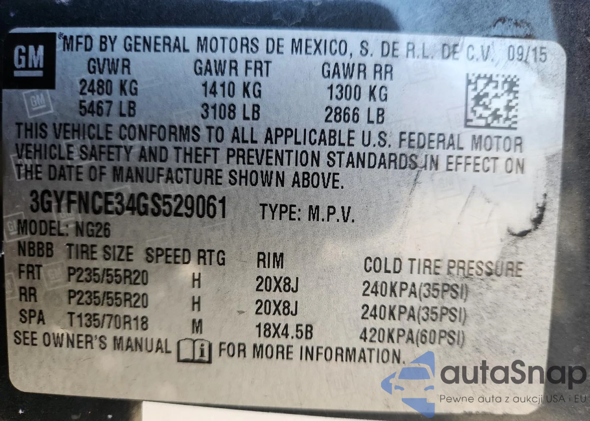 • VIN 3GYFNCE34GS529061