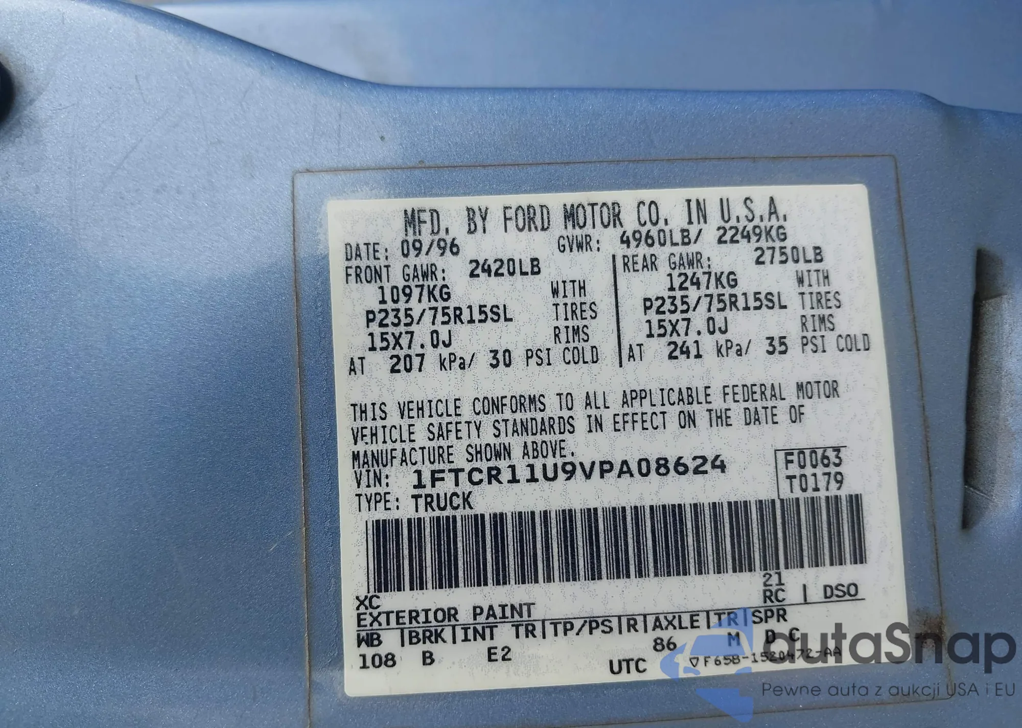 • VIN 1FTCR11U9VPA08624