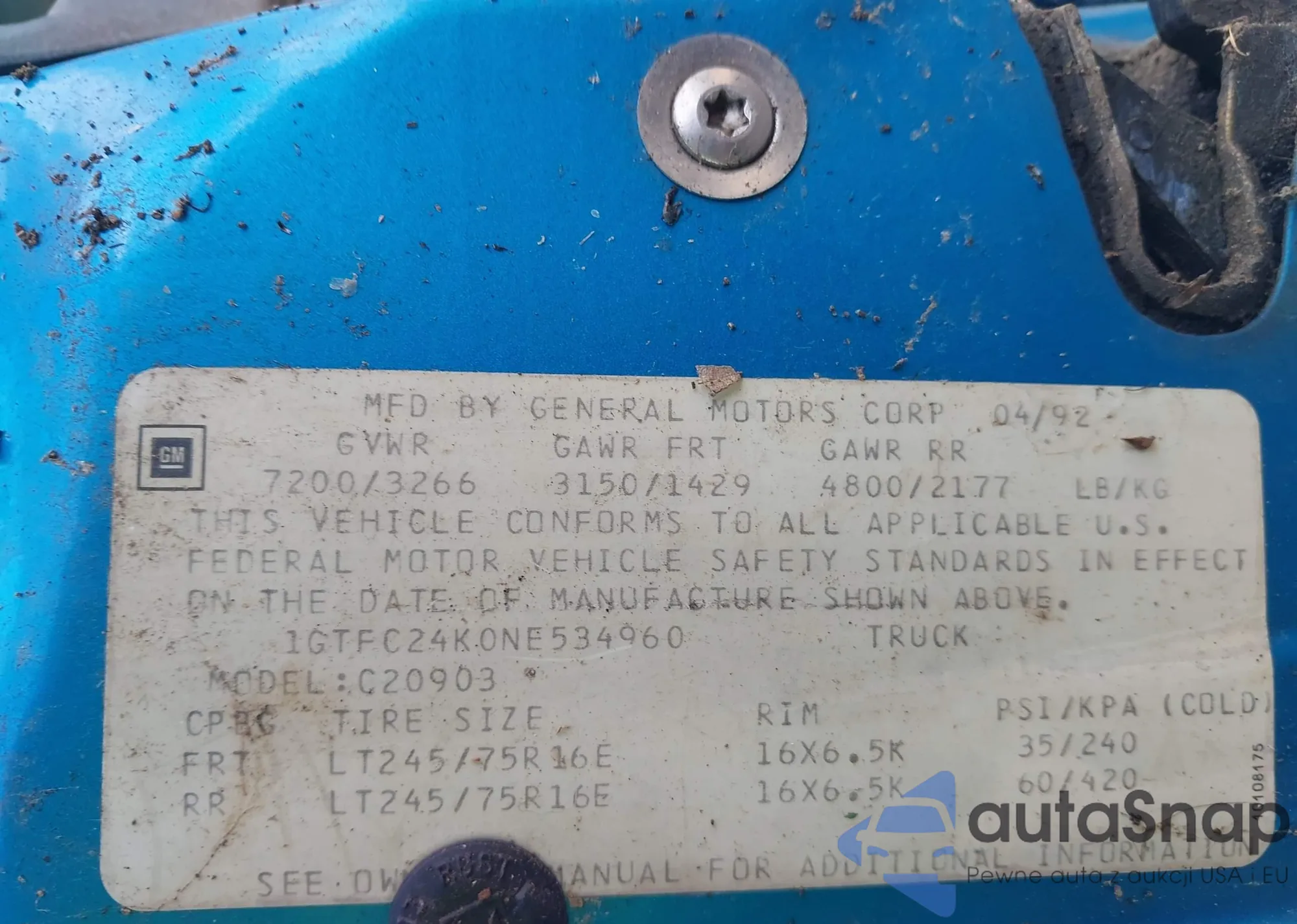 LOT: 43302466 VIN: 1GCEC14W5VZ119263