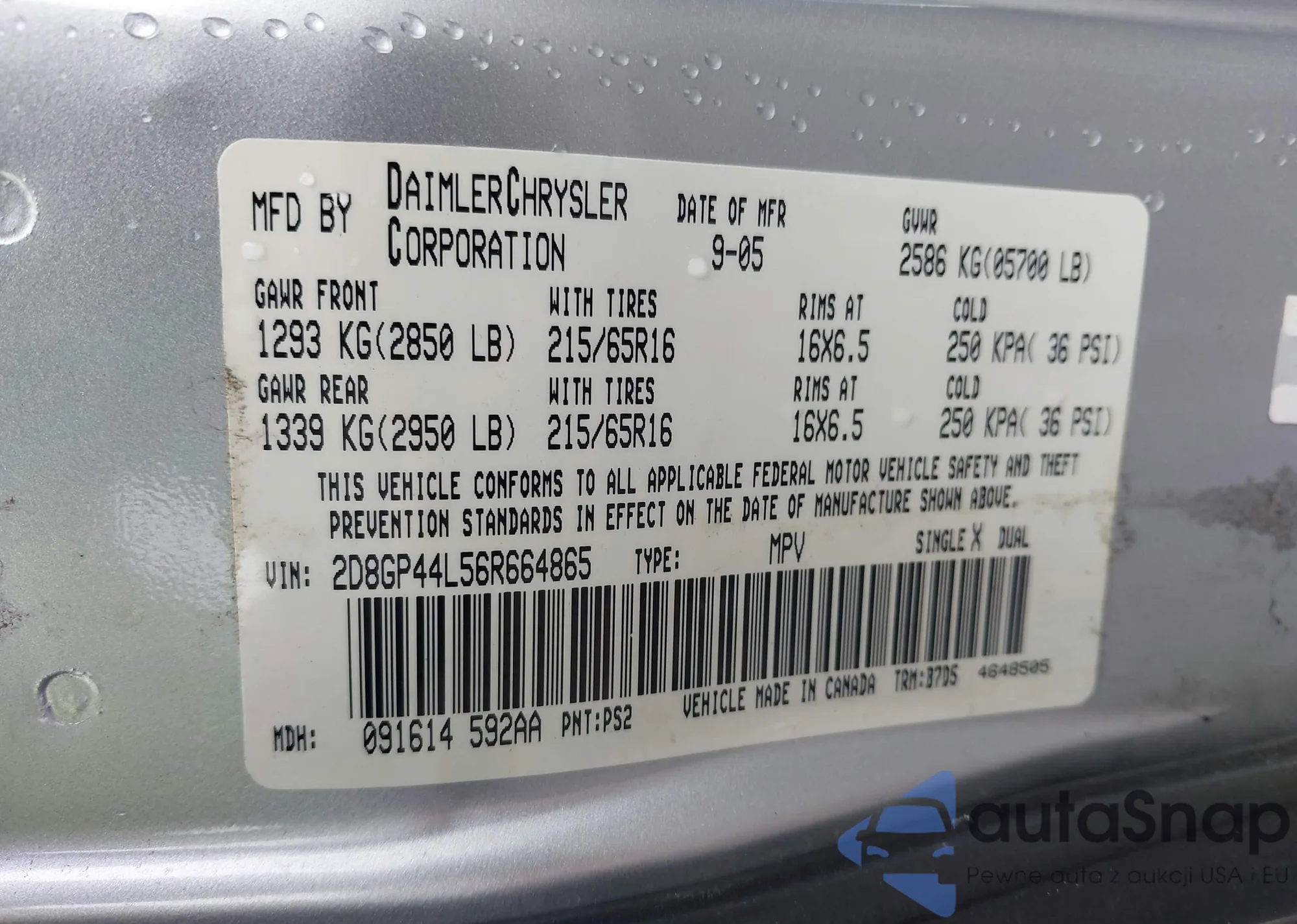 LOT: 43433811 VIN: 2D8GP44L56R664865