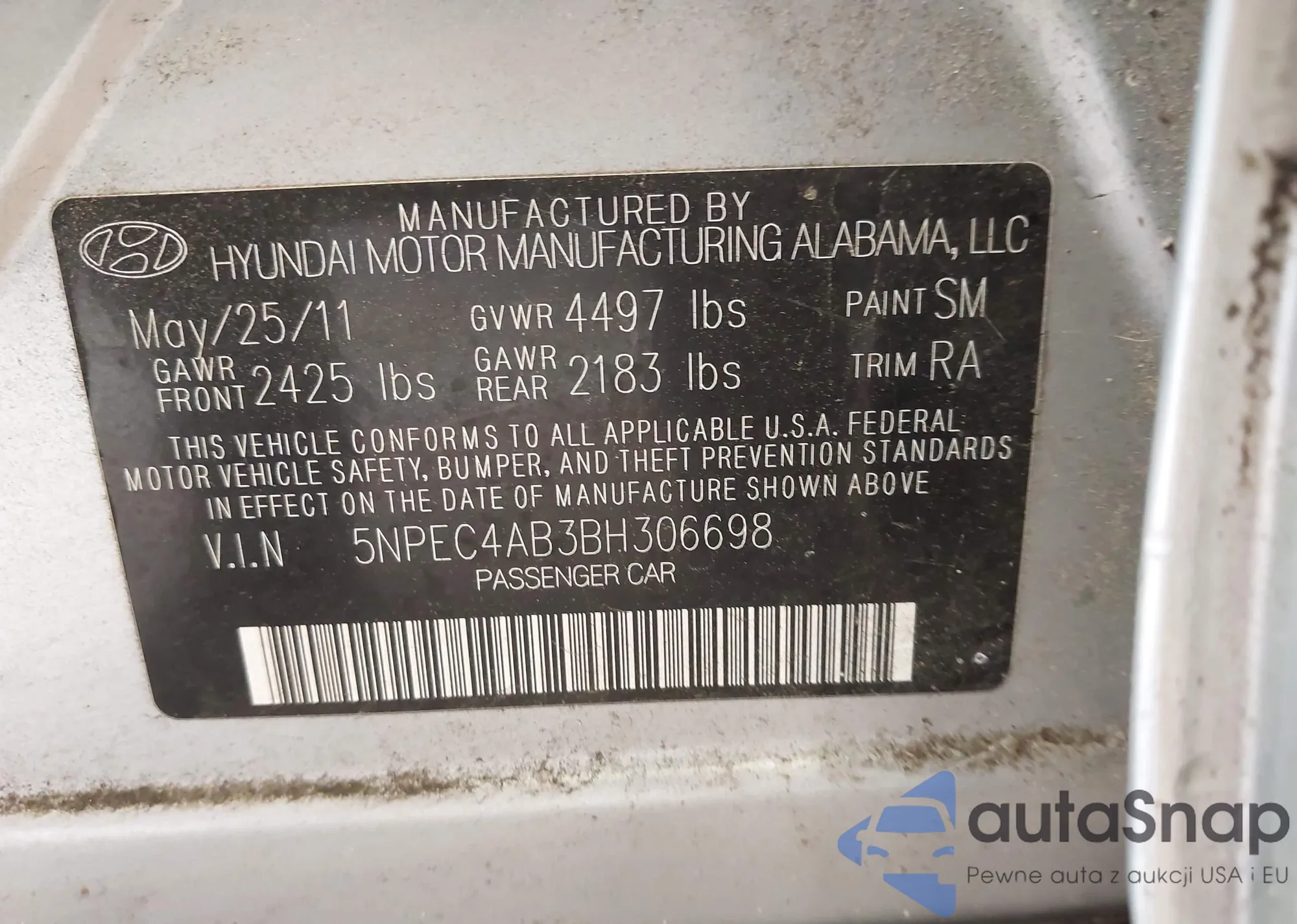 • VIN 5NPEC4AB3BH306698